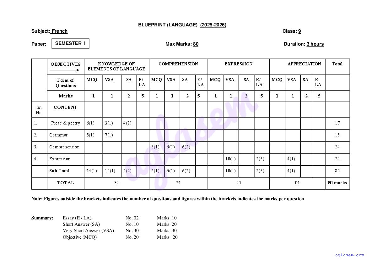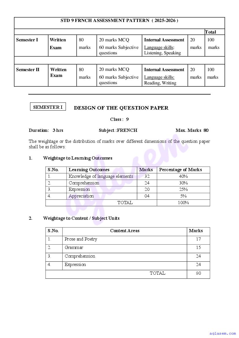 Goa Board Class 9 French Model Question Paper 2026 is published by GBSHSE. You can download the Goa Class 9 French Sample Paper PDF from here on aglasem. This Goa Board Class 9 Model Paper contains specimen questions from the latest French syllabus in a pattern similar to what you will get in actual Class 9 exams. Therefore by solving the French sample paper, you can boost your exam preparation and target 100% marks.