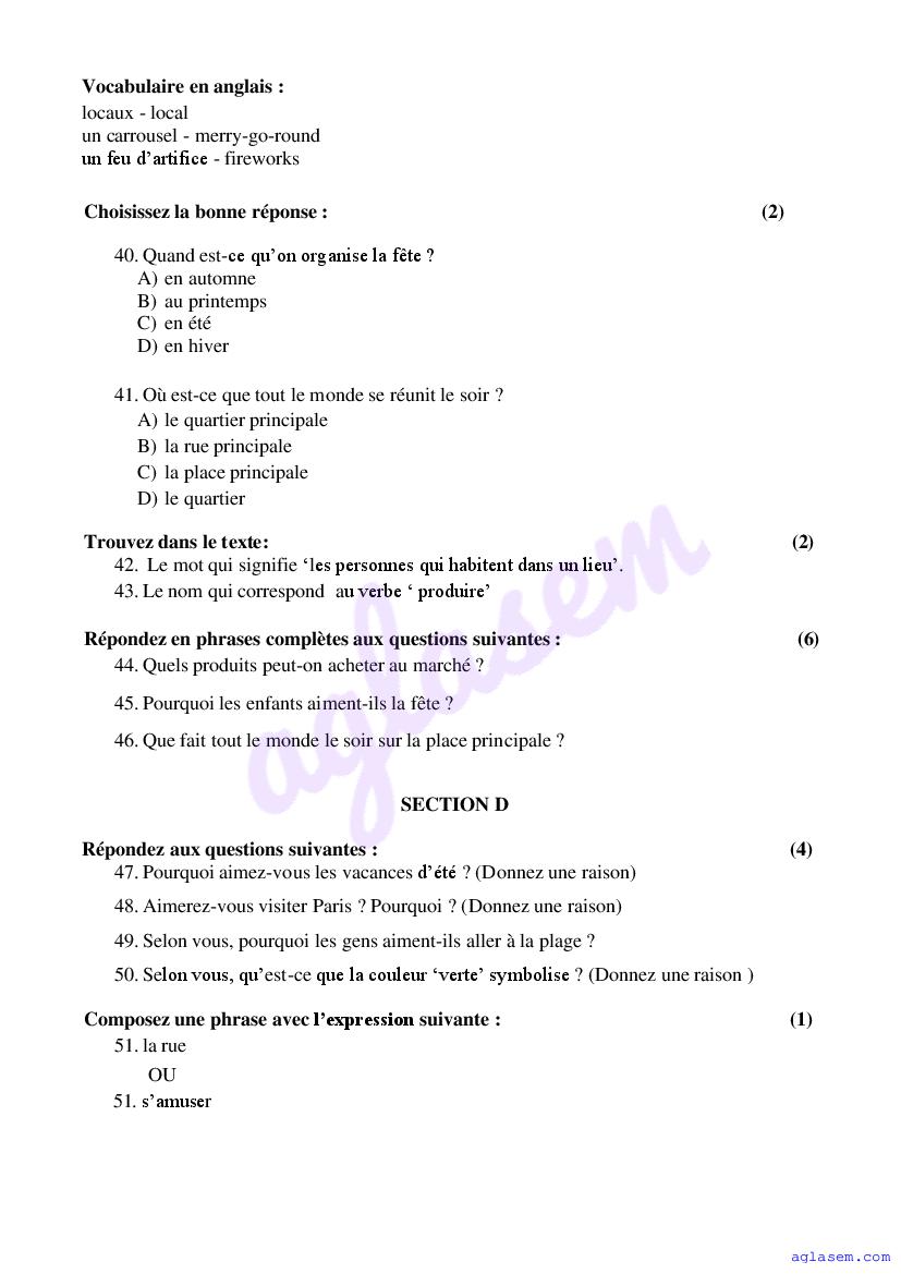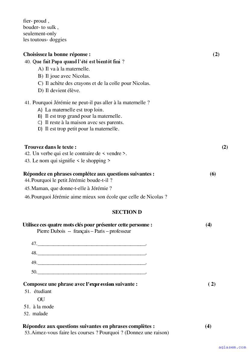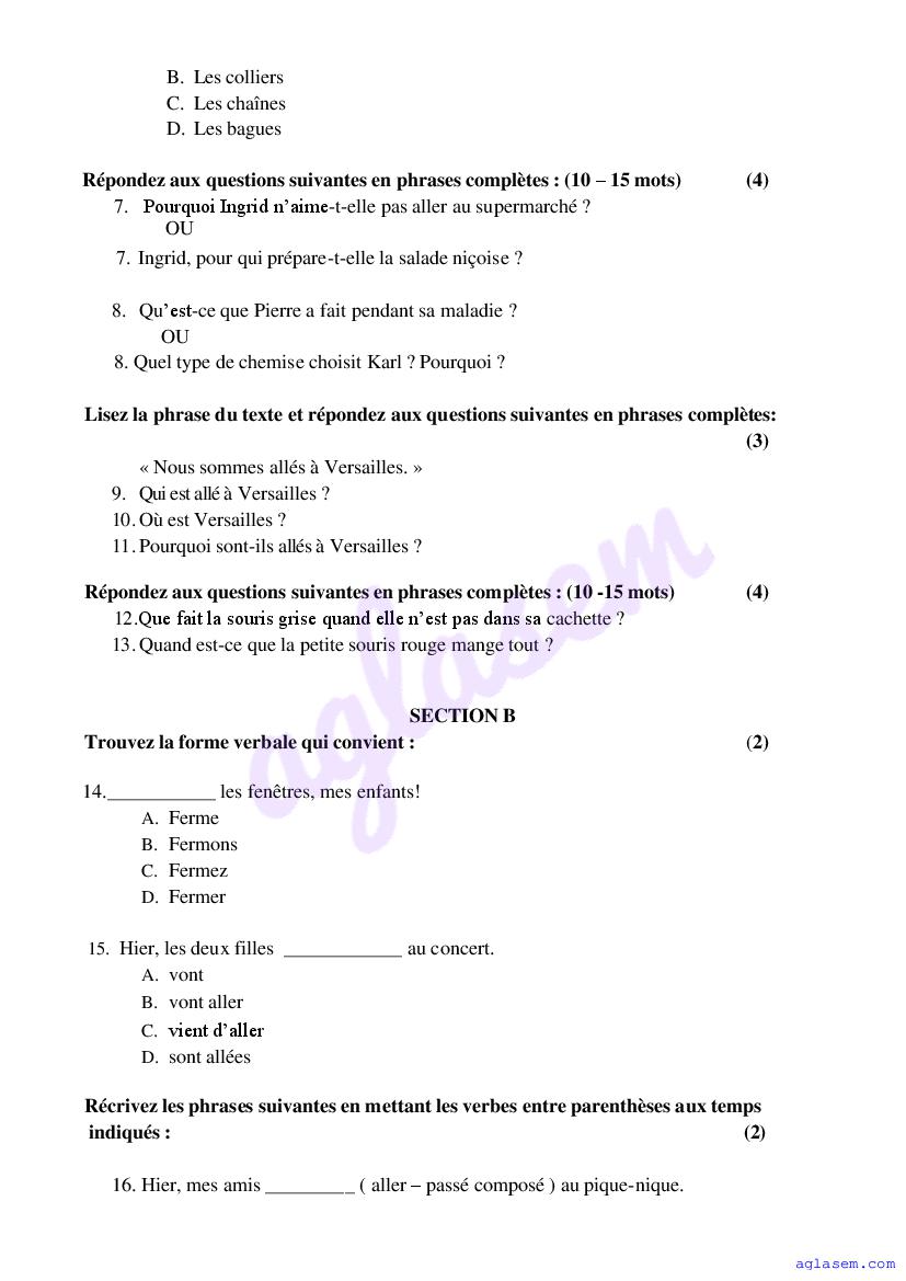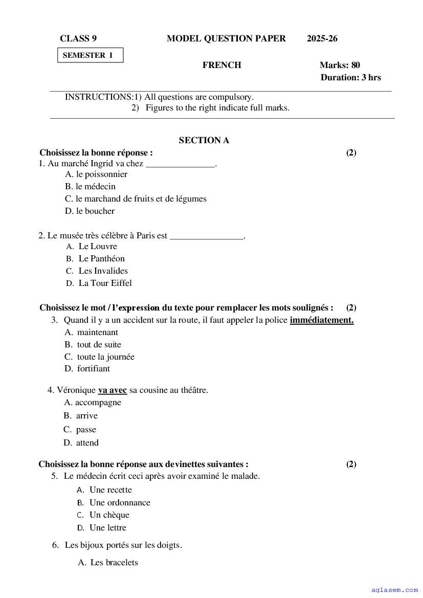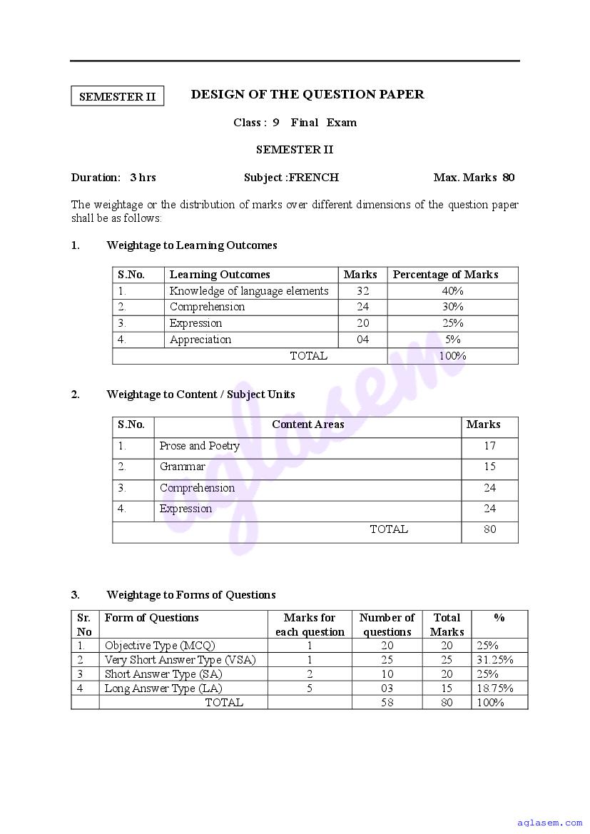 | Study Material Here | Goa Board Sample Question Paper of Class 9 French |