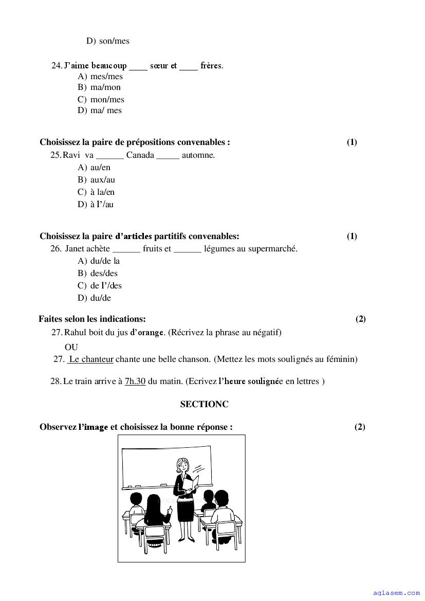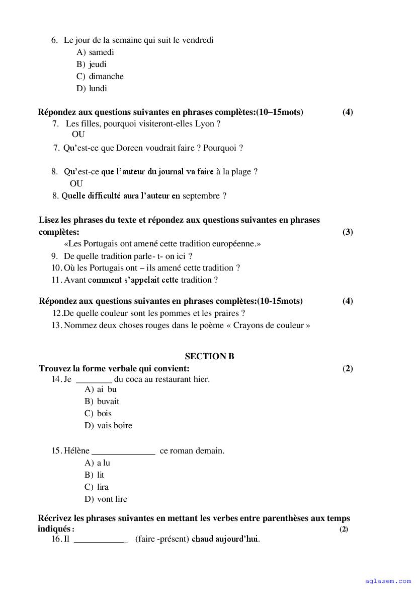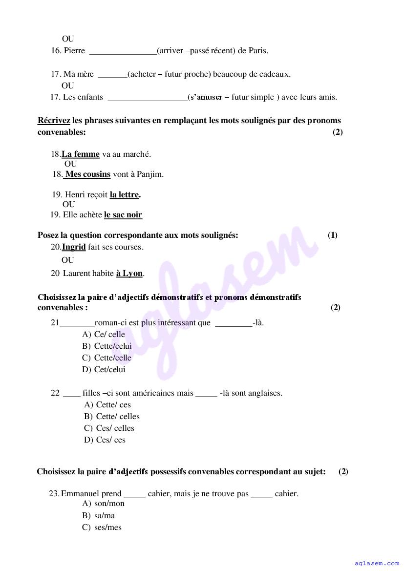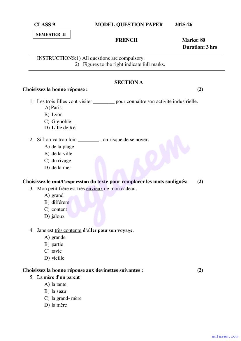 The Goa Board Model Paper for Class 9 (Class 9) French is as follows.