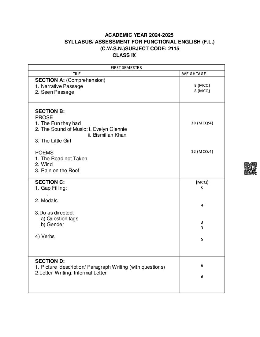 - Goa Board Class 9th Functional English Syllabus – You should refer the Goa Class 9 Syllabus for Functional English as prescribed by the Goa Board of Secondary and Higher Secondary Education.