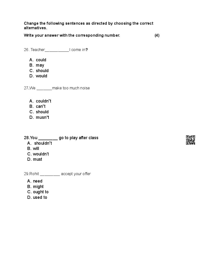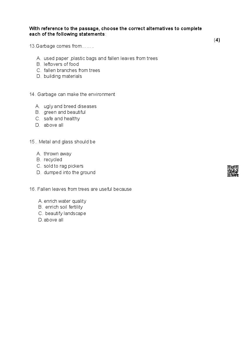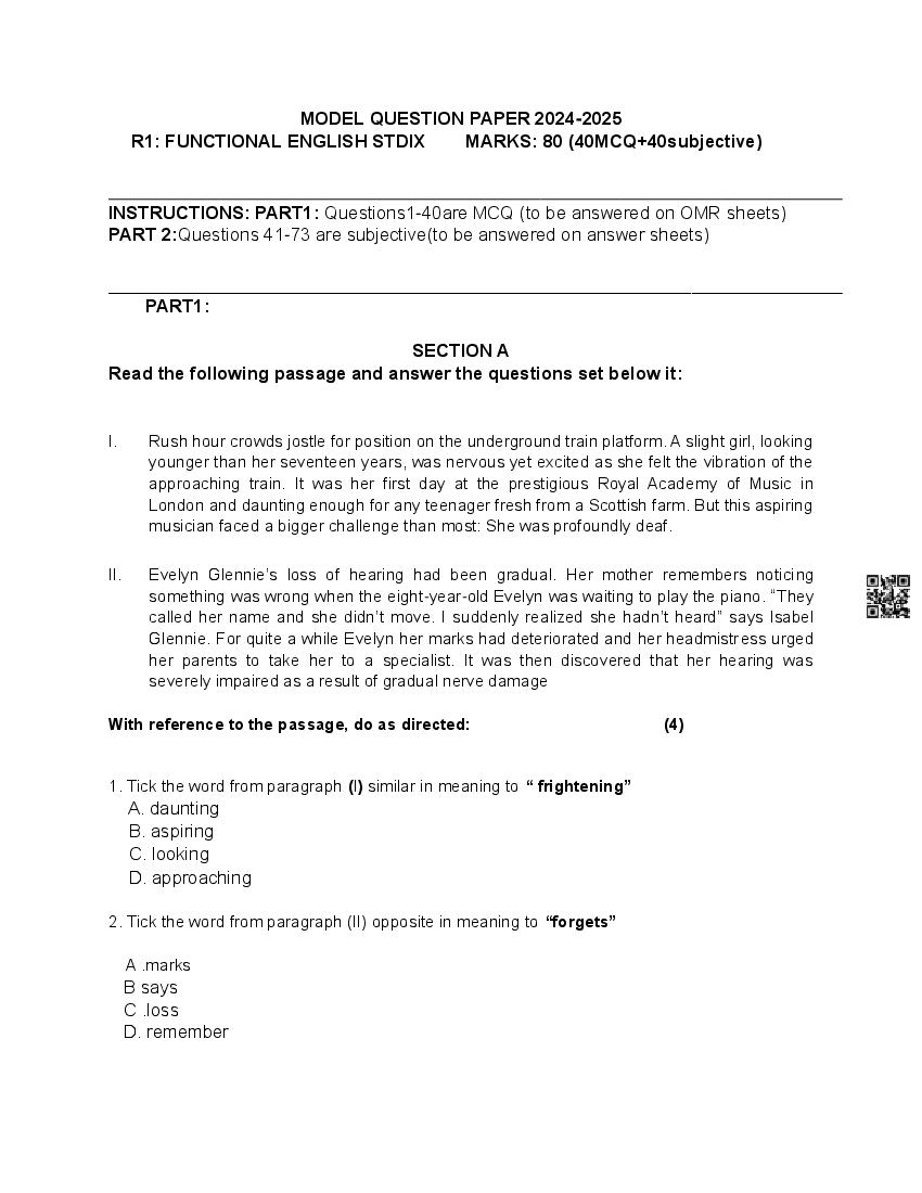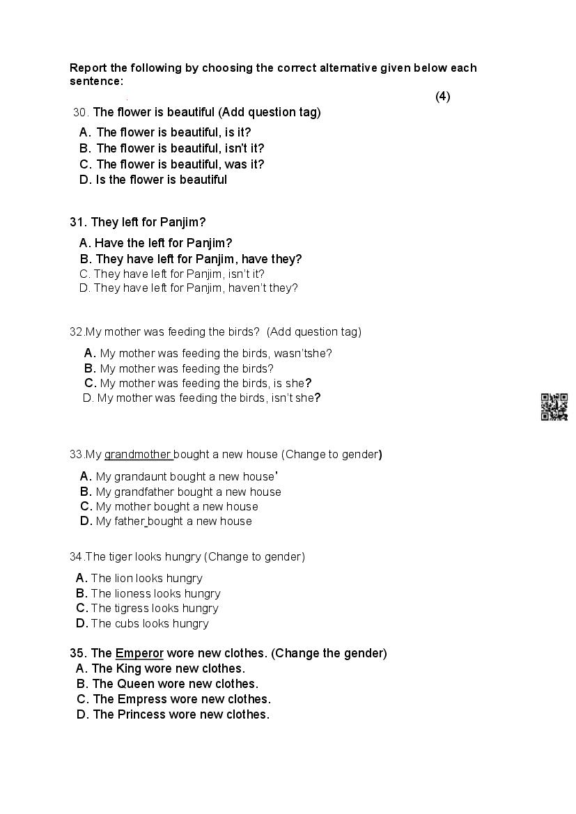 The Goa Board Model Paper for Class 9 (Class 9) Functional English is as follows.