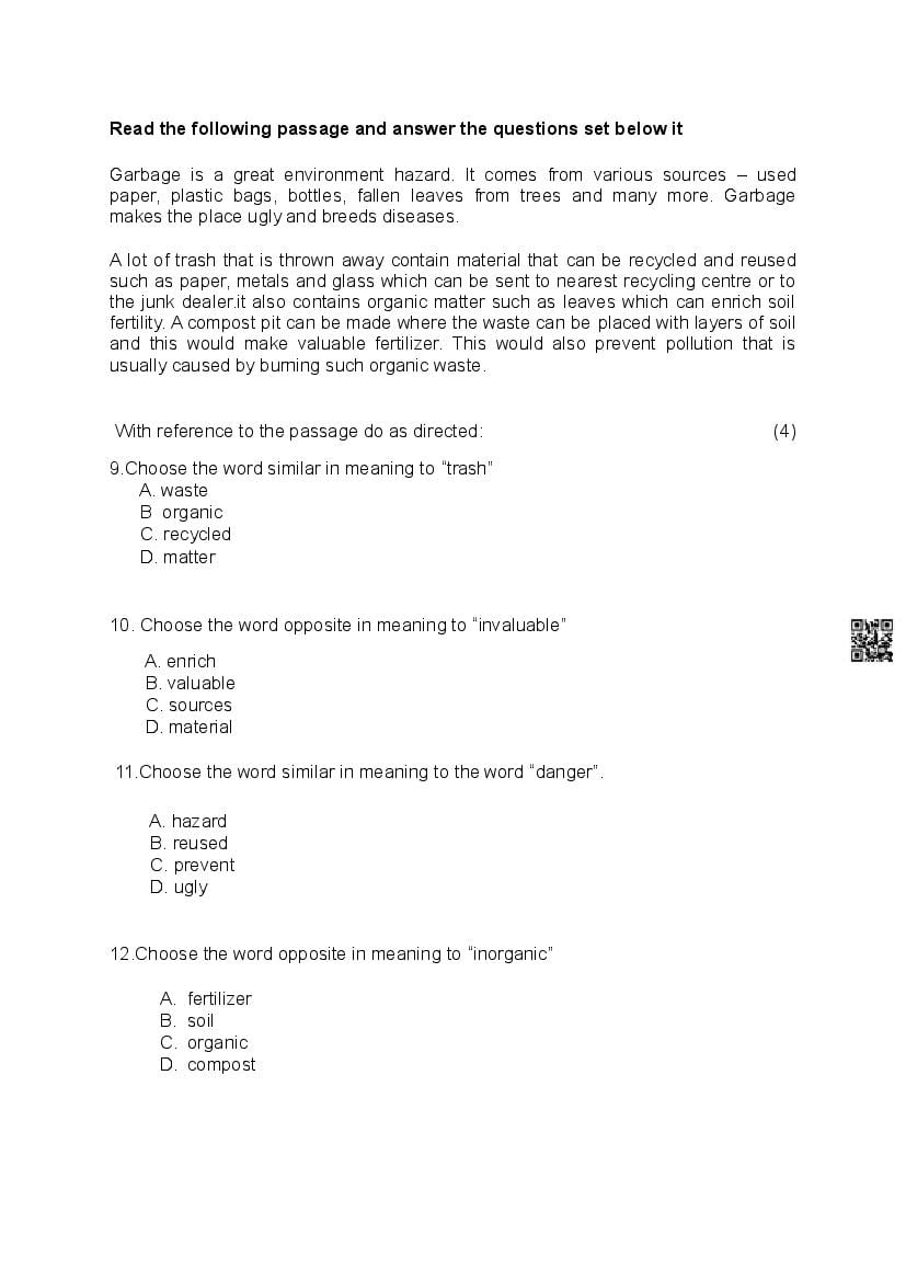| Study Material Here | Goa Board Sample Question Paper of Class 9 Functional English |