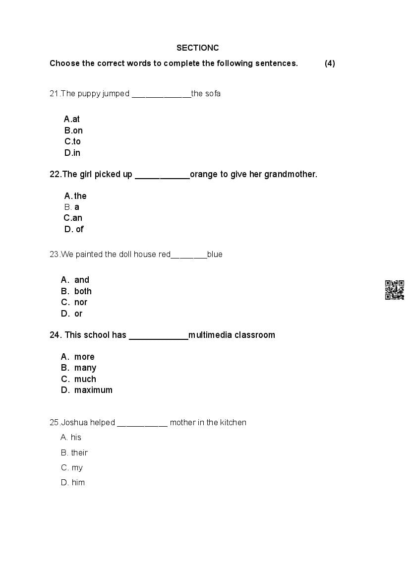 The complete specimen paper is as follows.