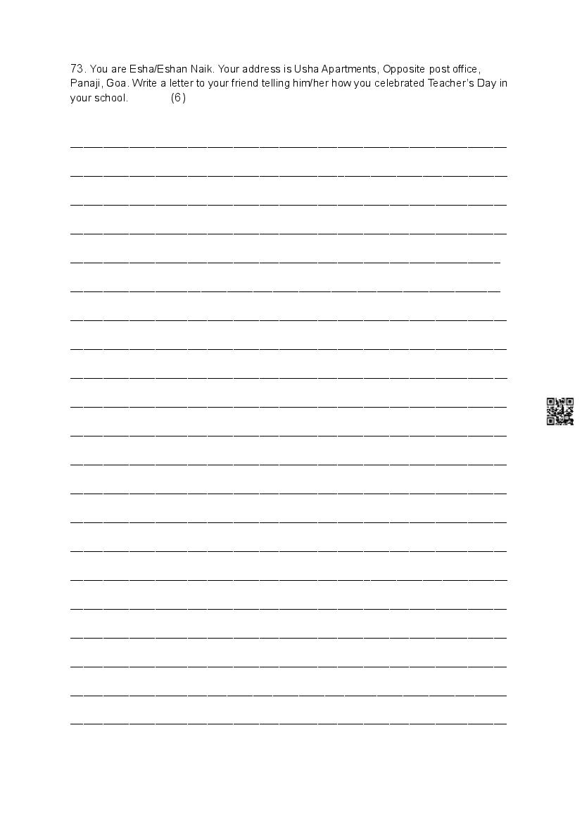 Goa Board Class 9 Sample Paper Functional English (Semester I) View Download