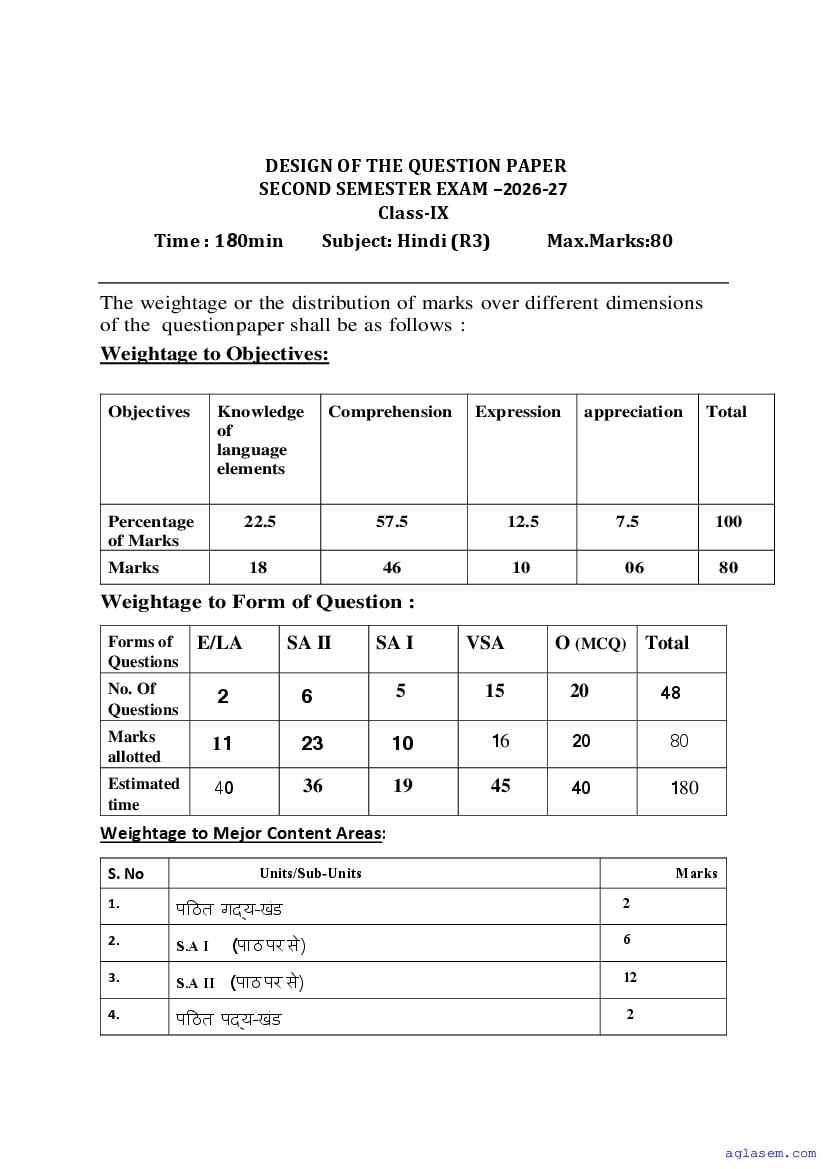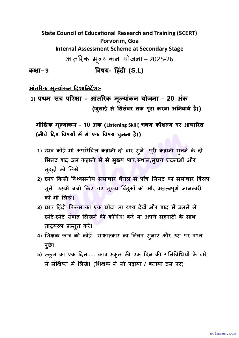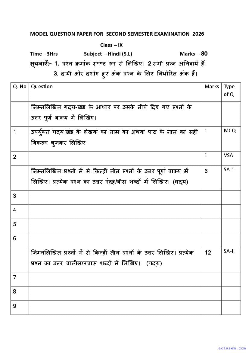 Goa Board Class 9 Hindi Model Question Paper 2026 is published by GBSHSE. You can download the Goa Class 9 Hindi Sample Paper PDF from here on aglasem. This Goa Board Class 9 Model Paper contains specimen questions from the latest Hindi syllabus in a pattern similar to what you will get in actual Class 9 exams. Therefore by solving the Hindi sample paper, you can boost your exam preparation and target 100% marks.
