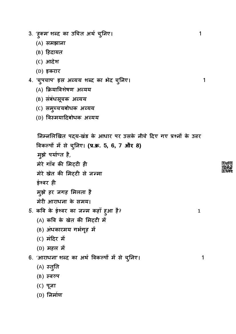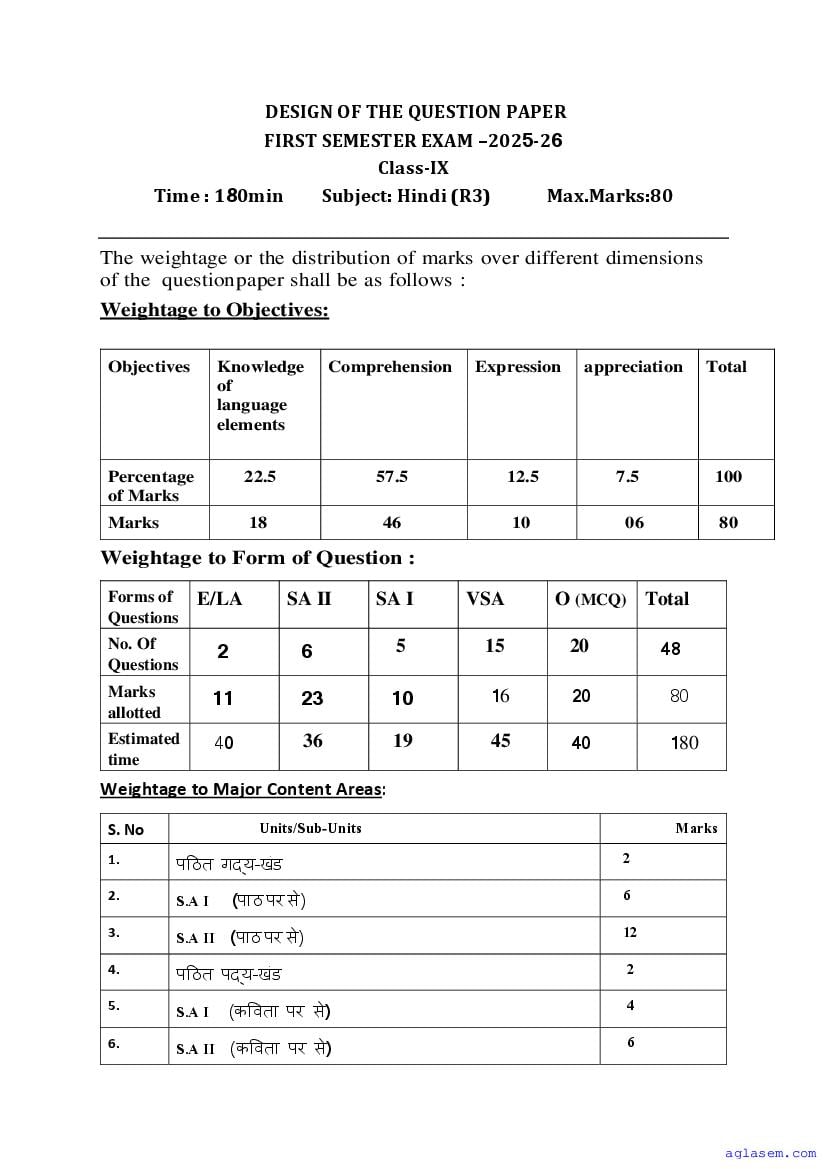 | Study Material Here | Goa Board Sample Question Paper of Class 9 Hindi |