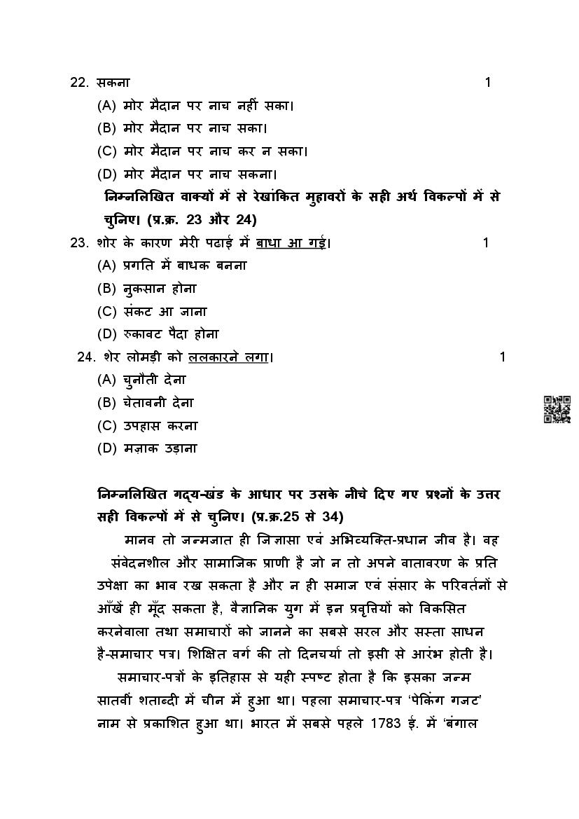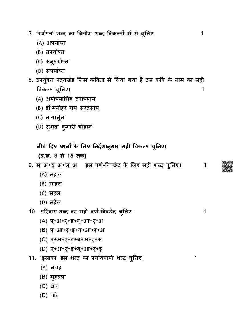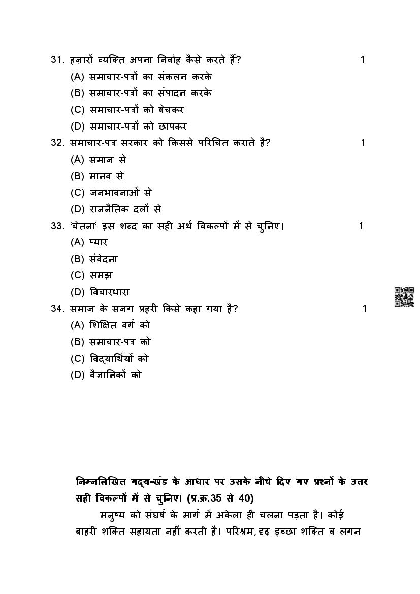The Goa Board Model Paper for Class 9 (Class 9) Hindi is as follows.
