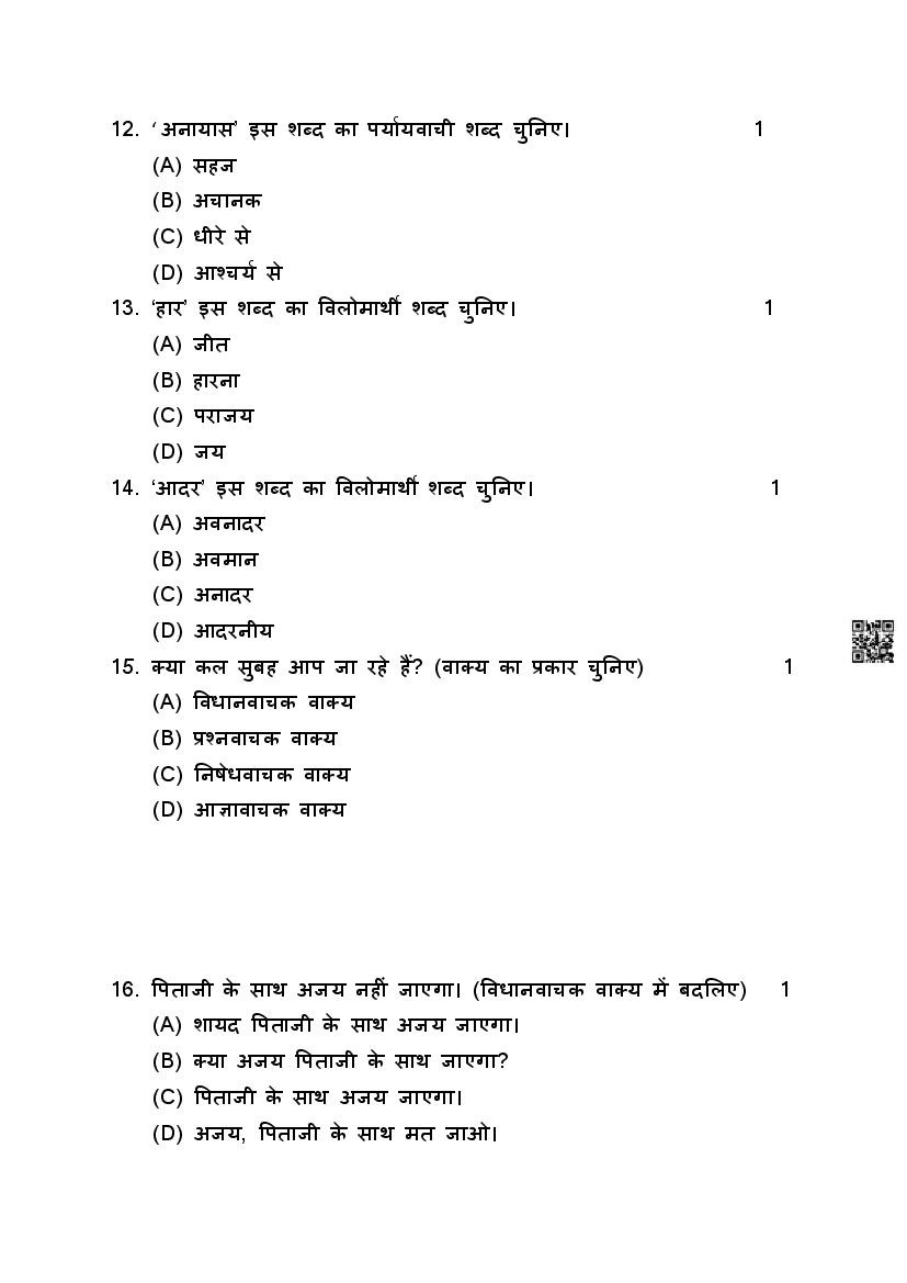 Goa Board Class 9 Sample Paper 2025 Hindi (Semester I) View Download