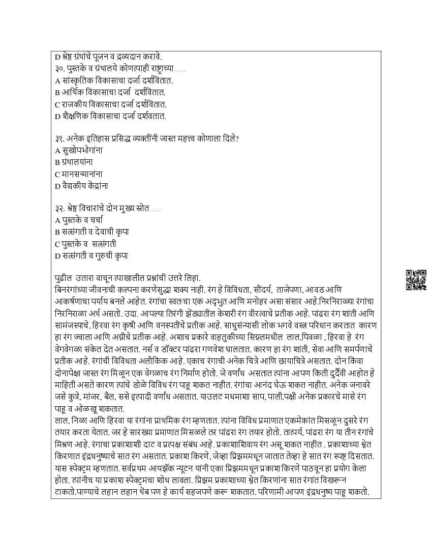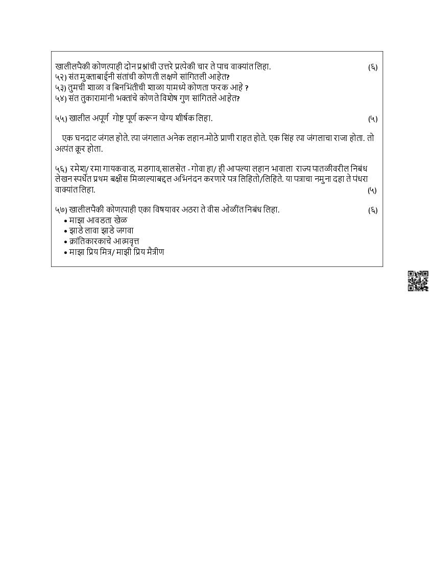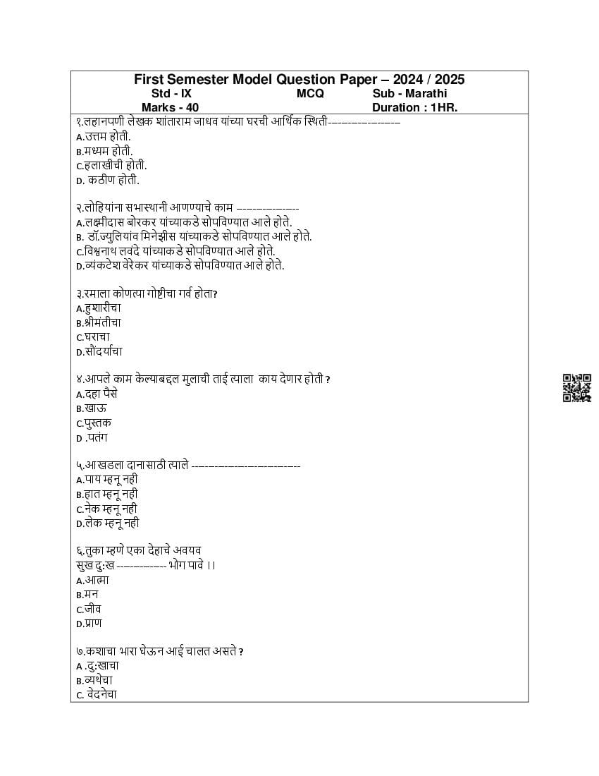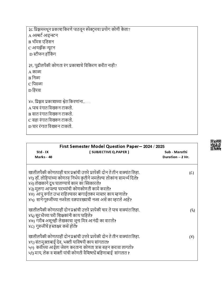 The Goa Board Model Paper for Class 9 (Class 9) Marathi is as follows.