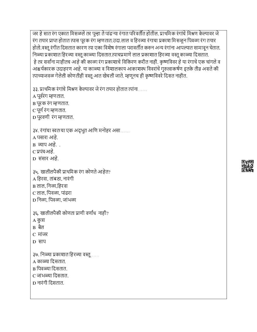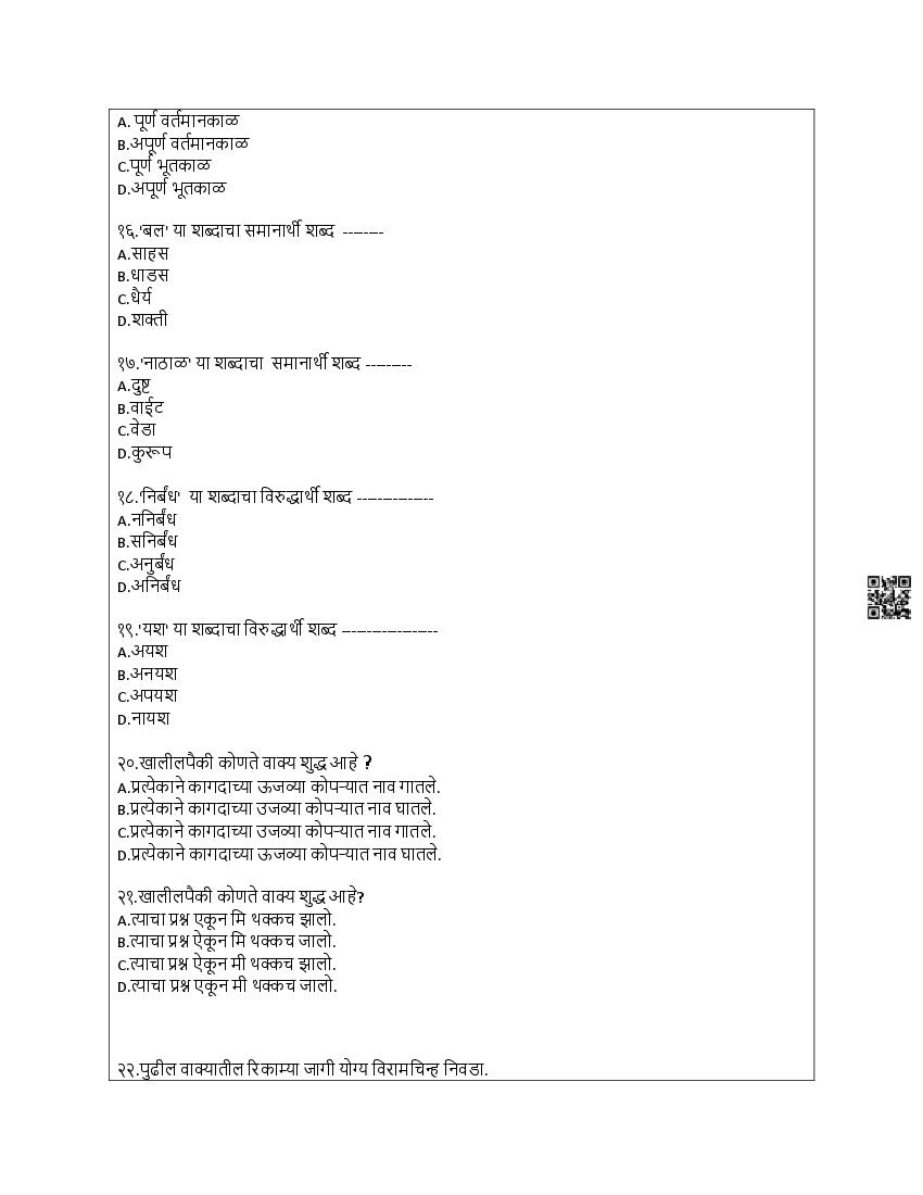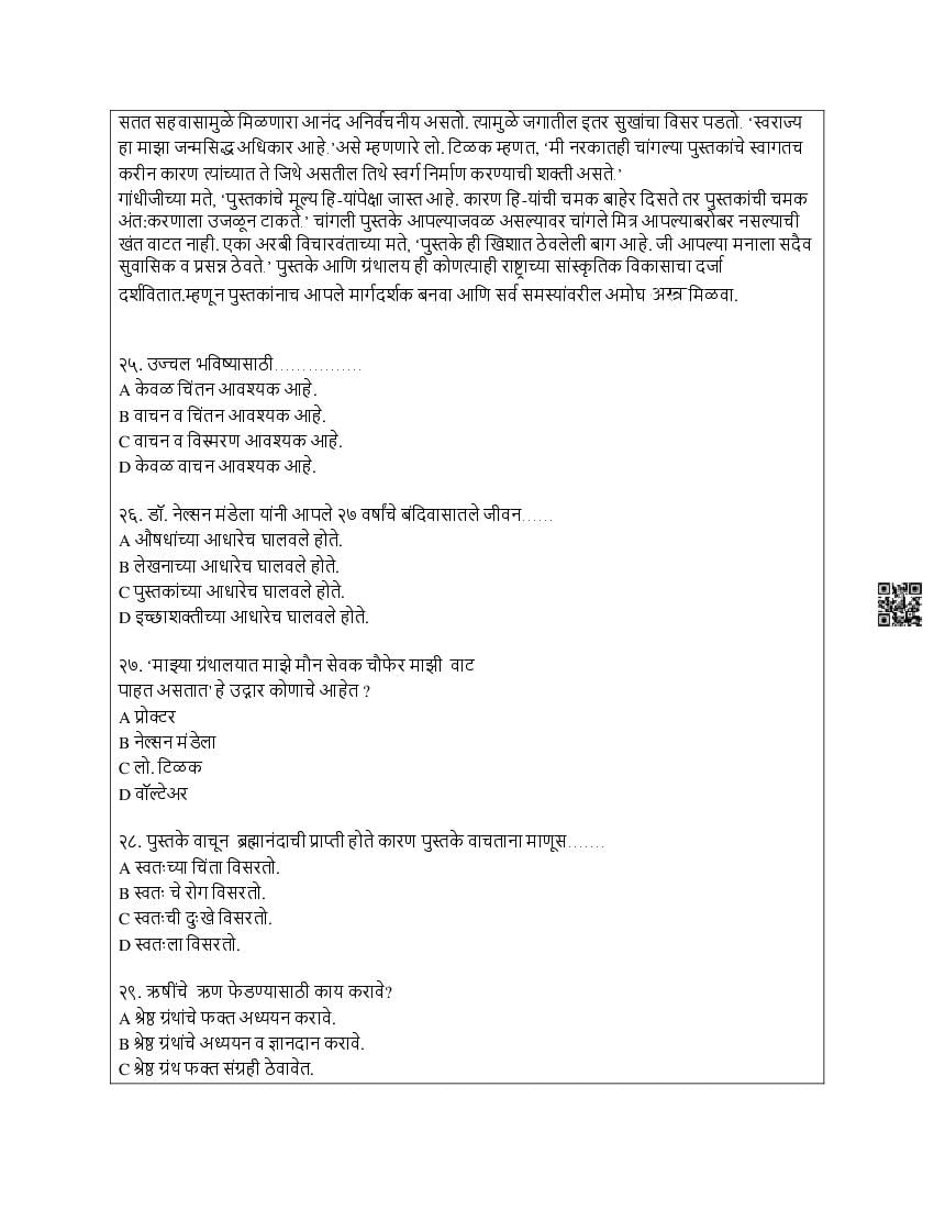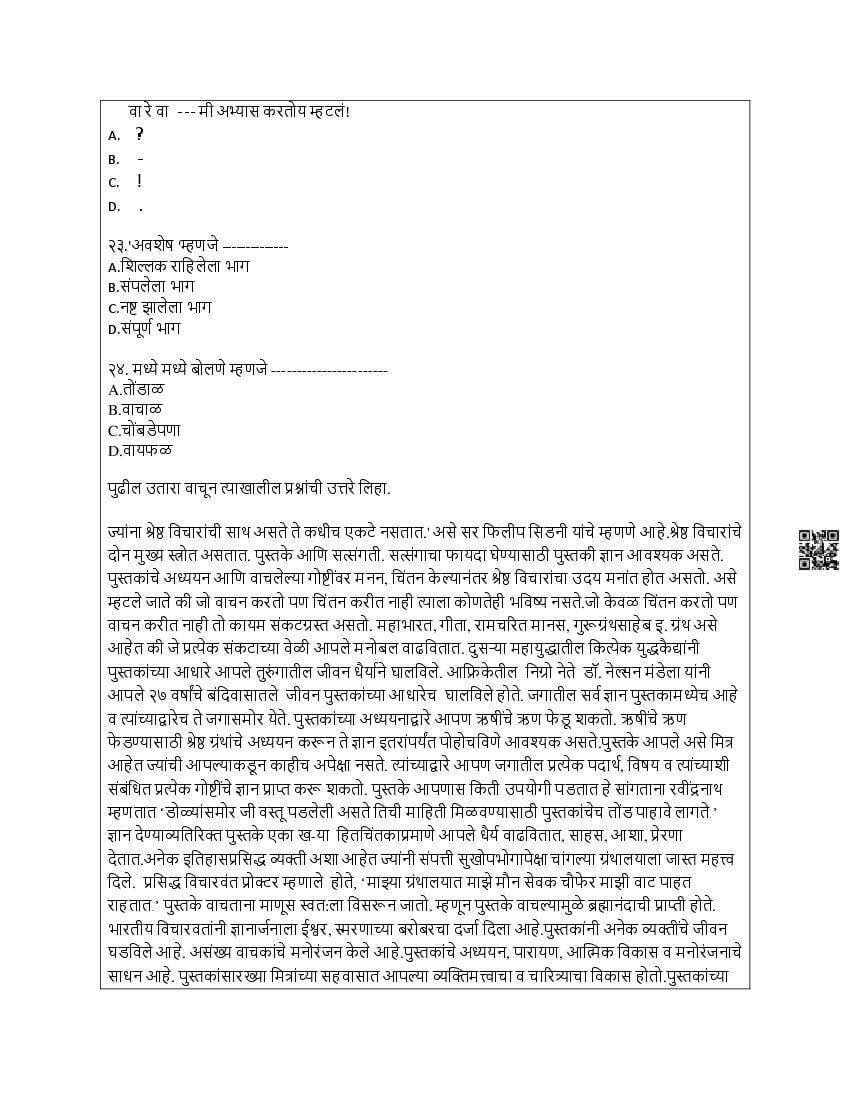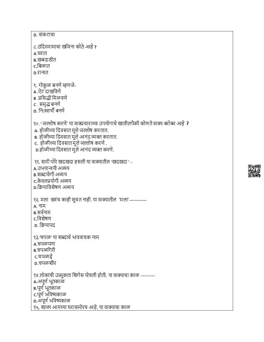 The Goa Board Model Paper for Class 9 (Class 9) Marathi is as follows.