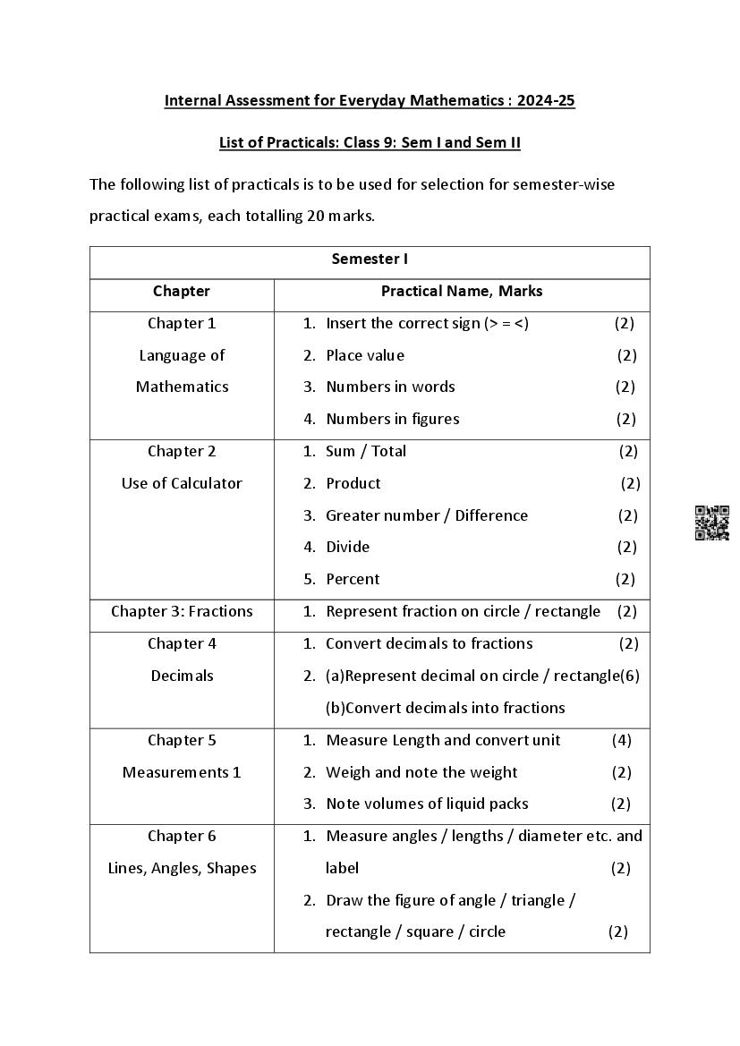 Goa Board Class 9 Sample Paper 2025 Maths Everyday (Semester I) View Download
