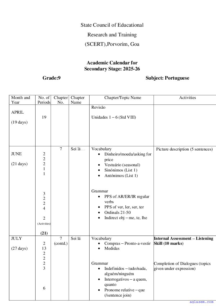 • Goa Board Class 9th Portuguese Syllabus – You should refer the Goa Class 9 Syllabus for Portuguese as prescribed by the Goa Board of Secondary and Higher Secondary Education.