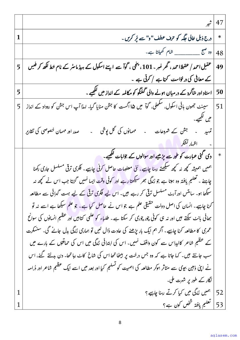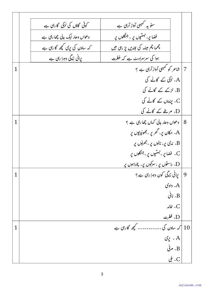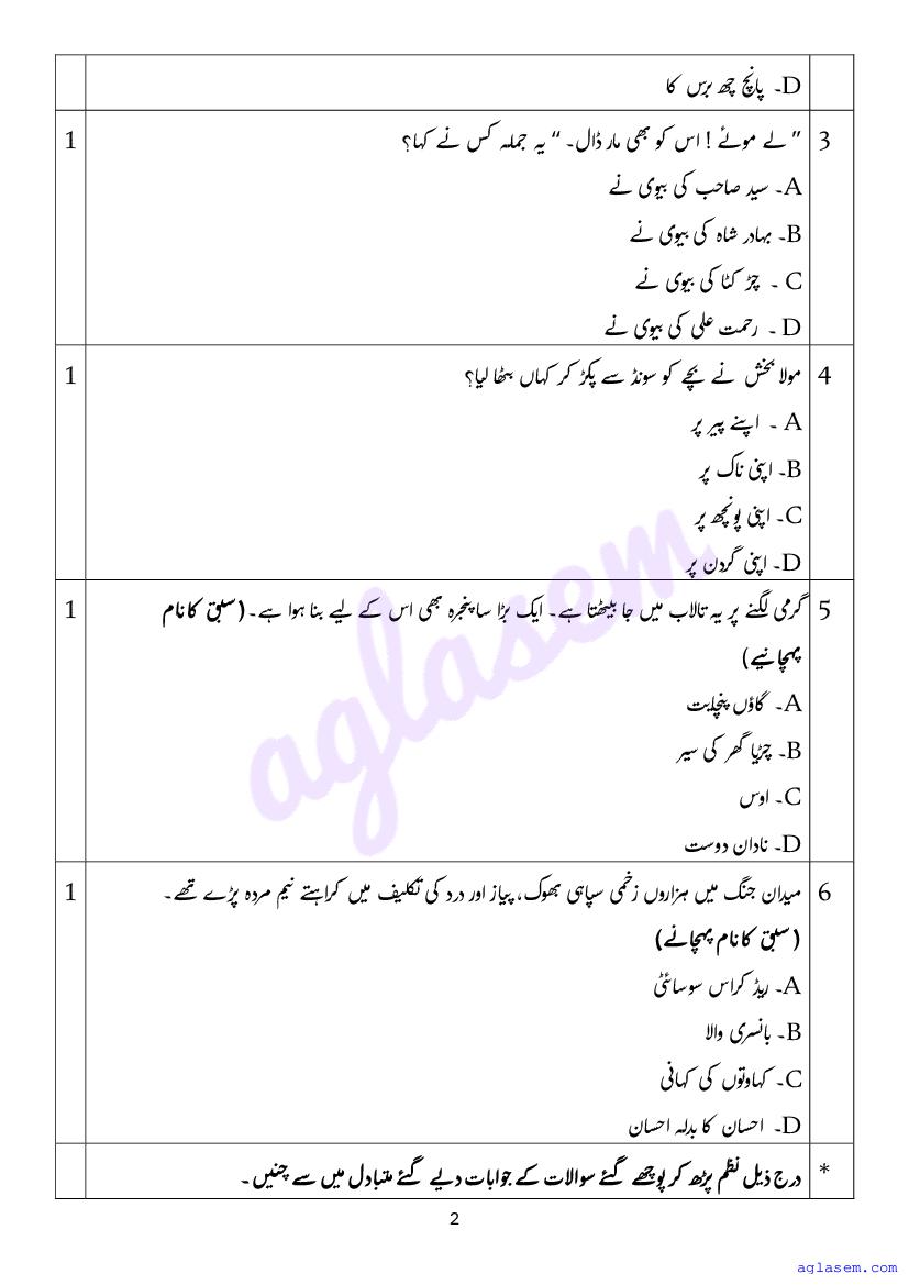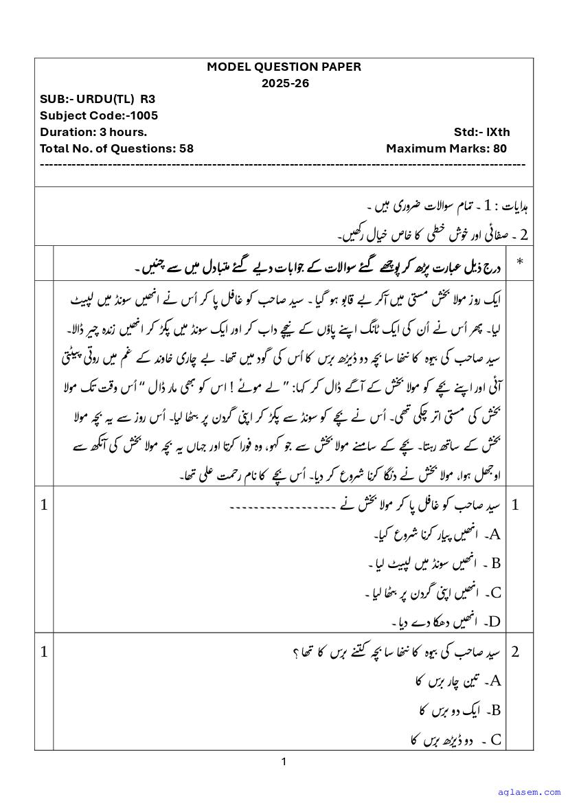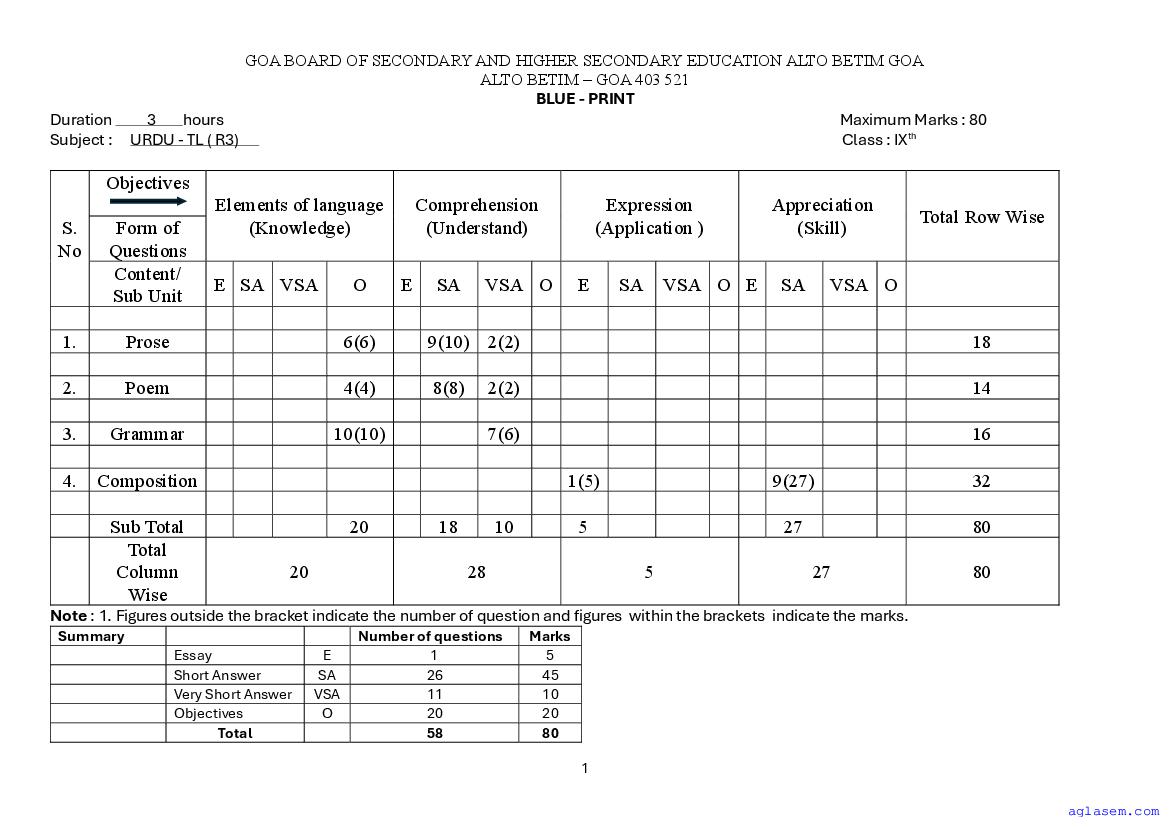 The Goa Board Model Paper for Class 9 (Class 9) Urdu is as follows.
