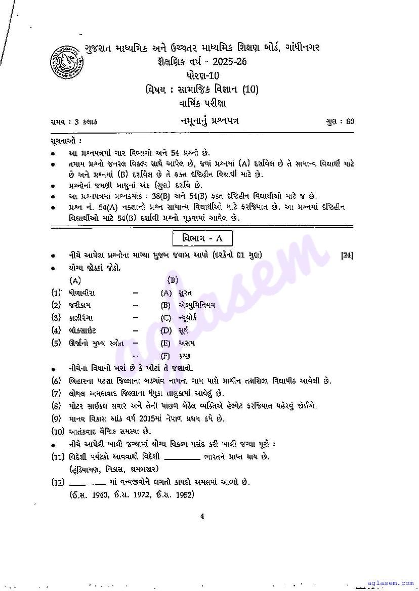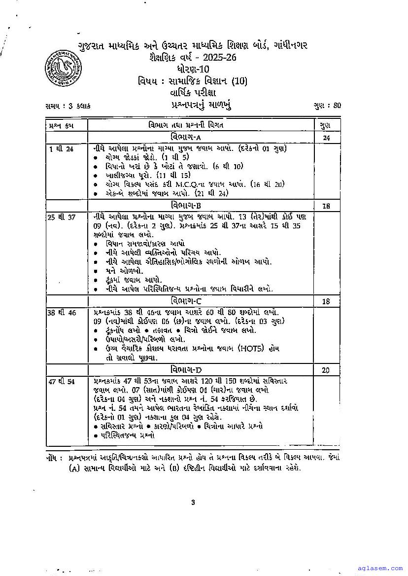 | More Sample Papers of This Class | Gujarat Board Class 10 Model Question Paper |