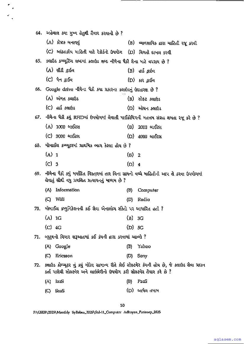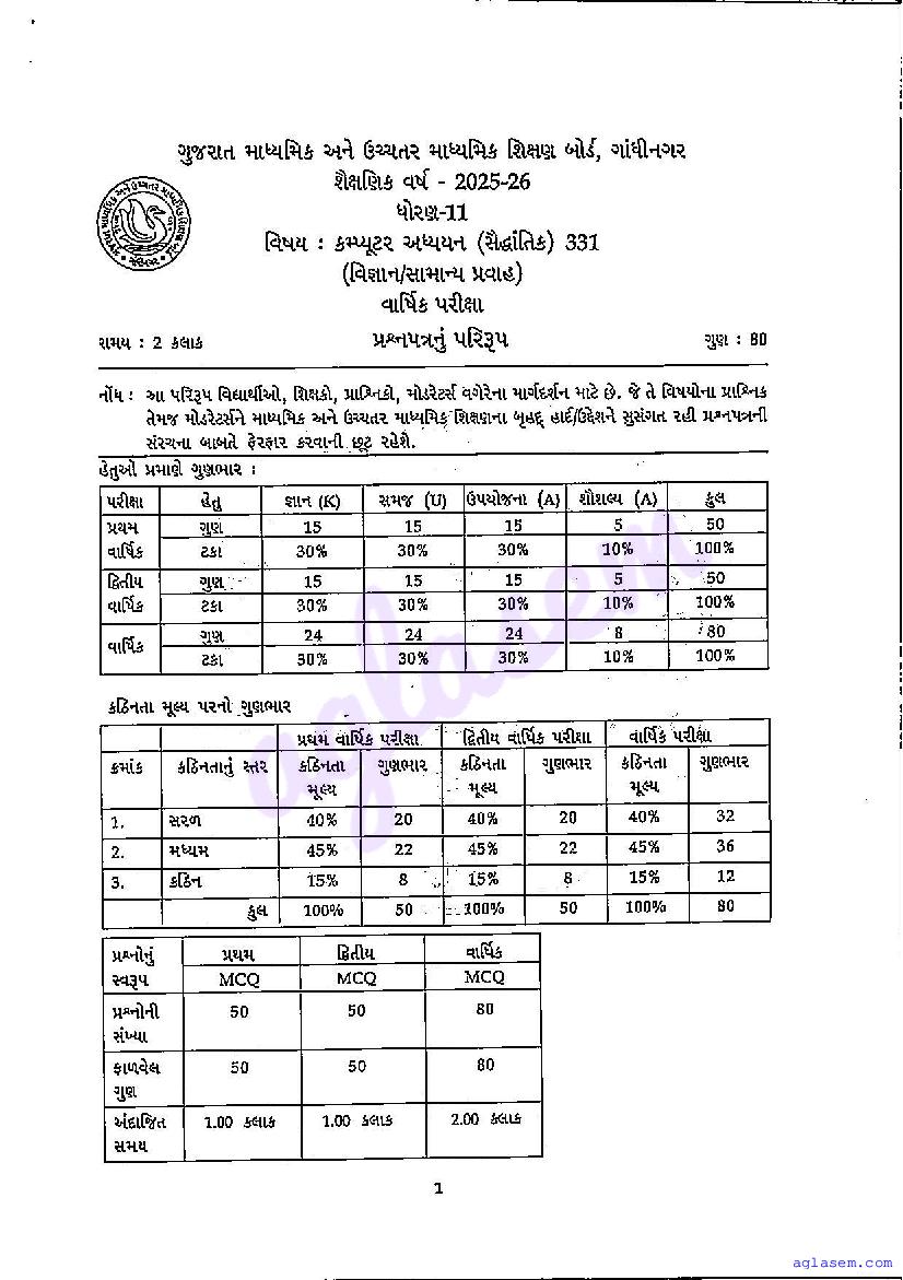 GSEB 11th Std Model Question Paper 2026 Computer Studies View Download