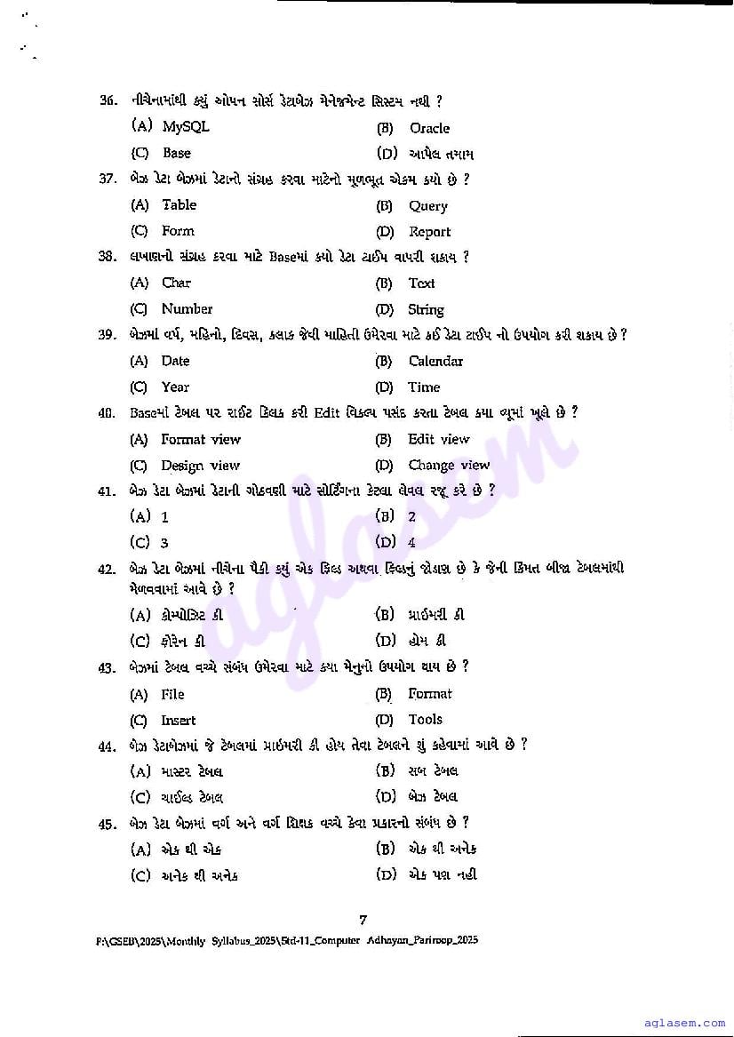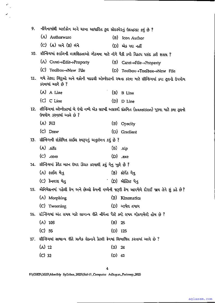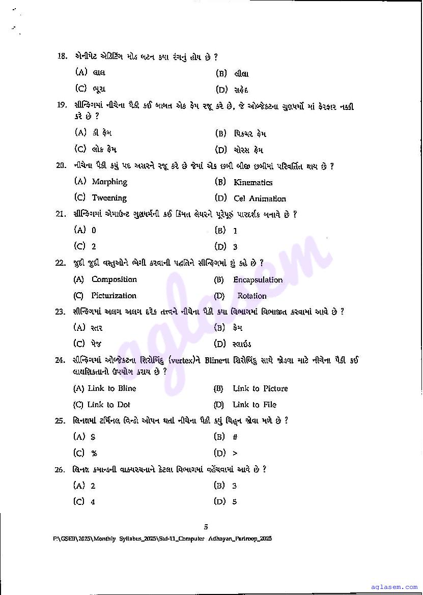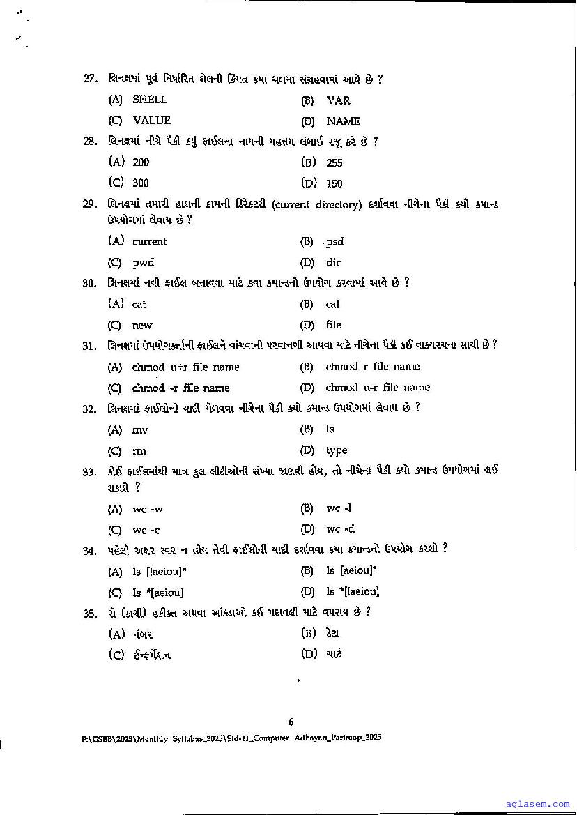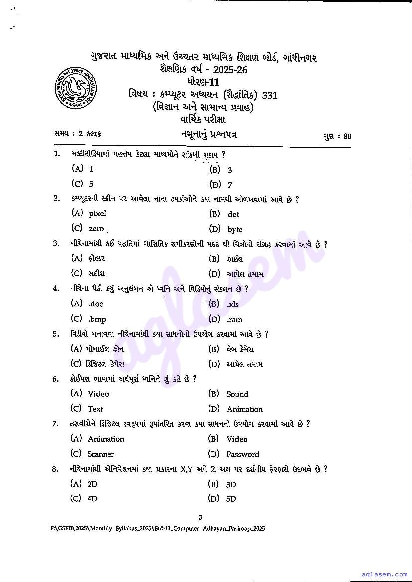 GSEB Std 11th Computer Studies Model Paper 2026 has been released by Gujarat Board. You can download the Gujarat Board Class 11 Computer Studies Sample Paper PDF from this page on Aglasem for study purposes. This GSEB Std 11th Model Paper is for the Computer Studies subject to help you prepare for the Class 11 exams. The Computer Studies sample paper includes illustrative questions based on the latest Gujarat Board syllabus for Standard 11, thereby helping you prepare for the Computer Studies paper. By practicing with the Std 11 Computer Studies sample paper, you can aim for high marks in the GSEB exams.