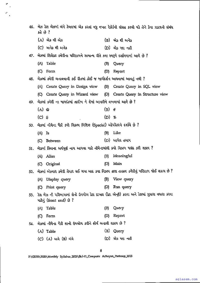 Similarly you can download the model papers for all classes of Gujarat board from aglasem.