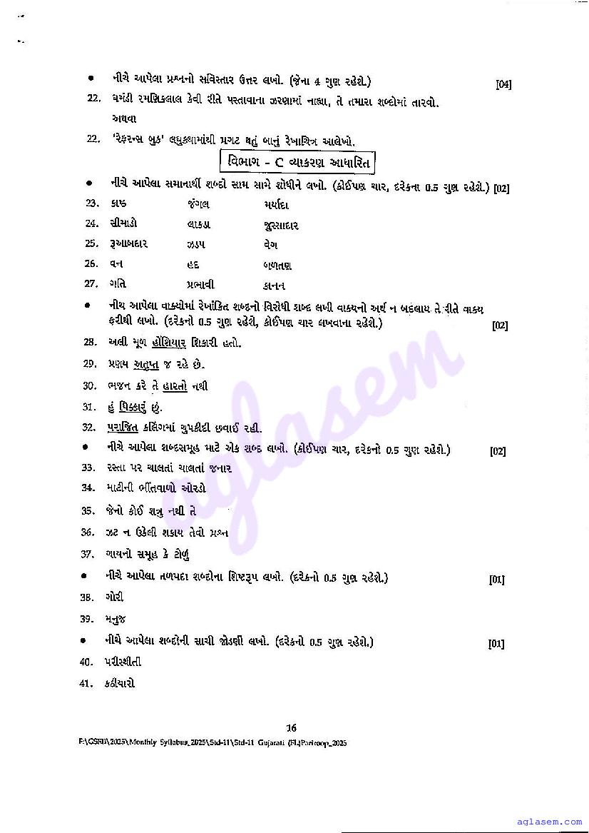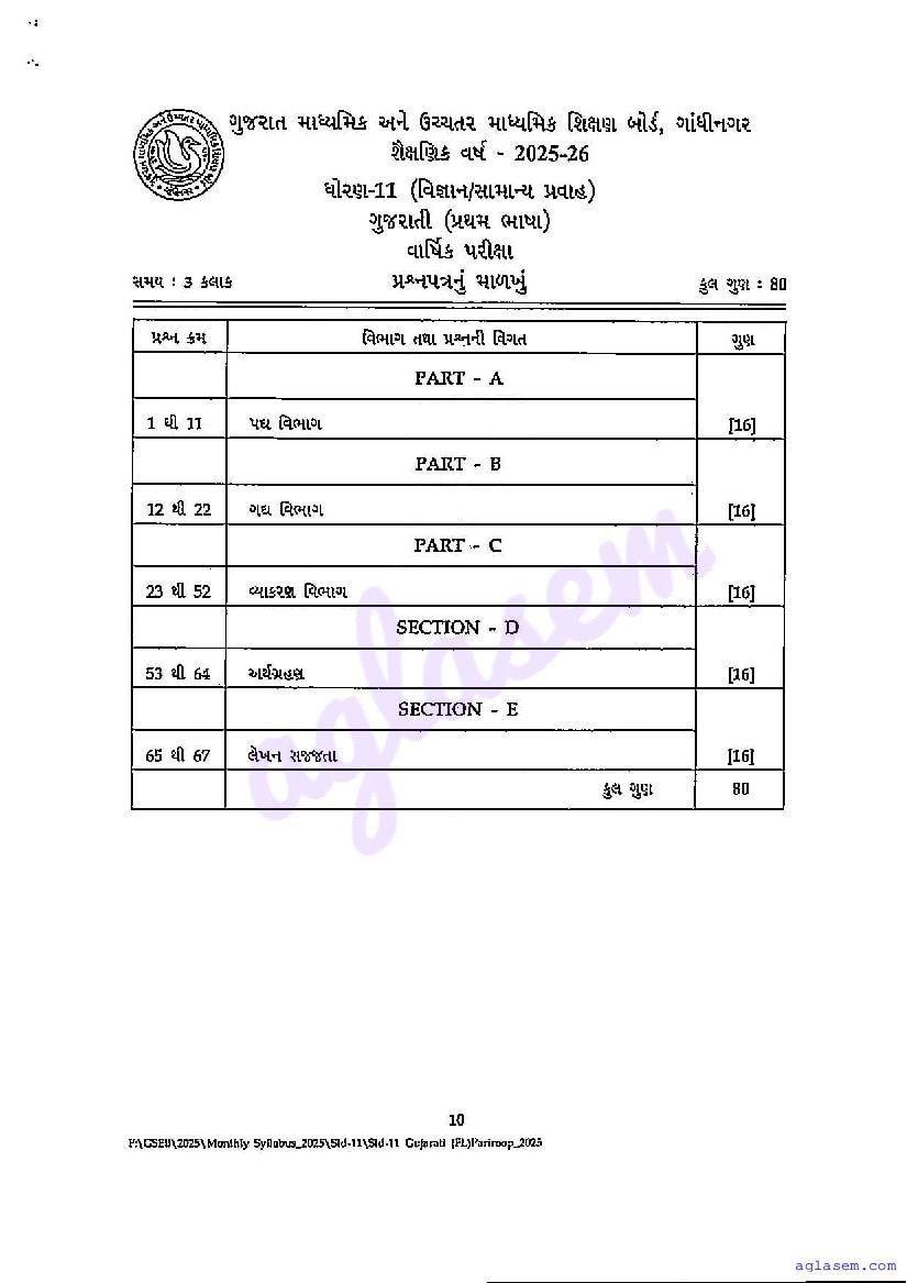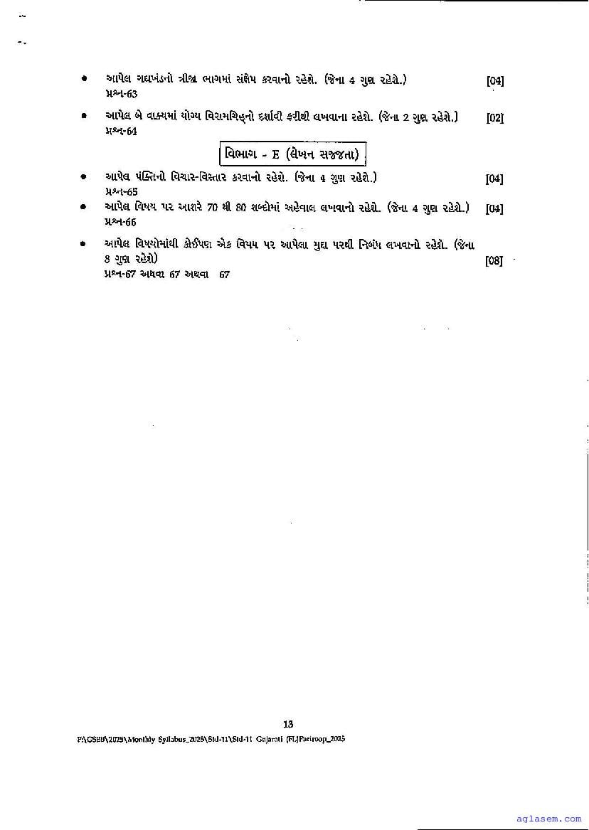 | Educational Resource Here | Gujarat Board Class 11 Gujarati FL Model Question Paper |