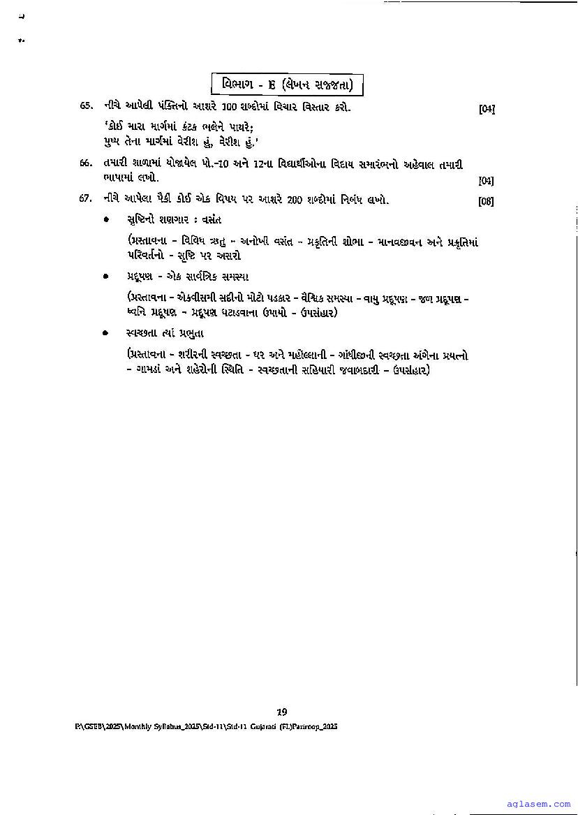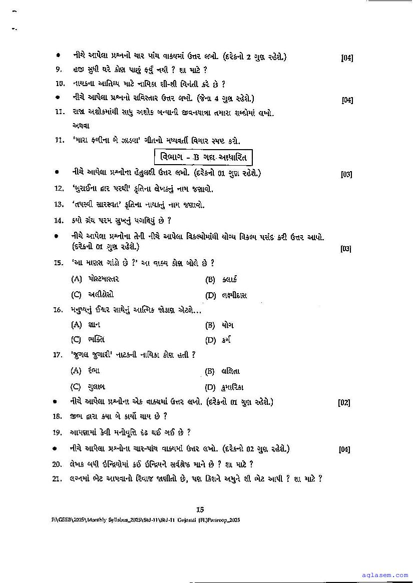 The GSEB Sample Paper for class 11 Gujarati FL is as follows.