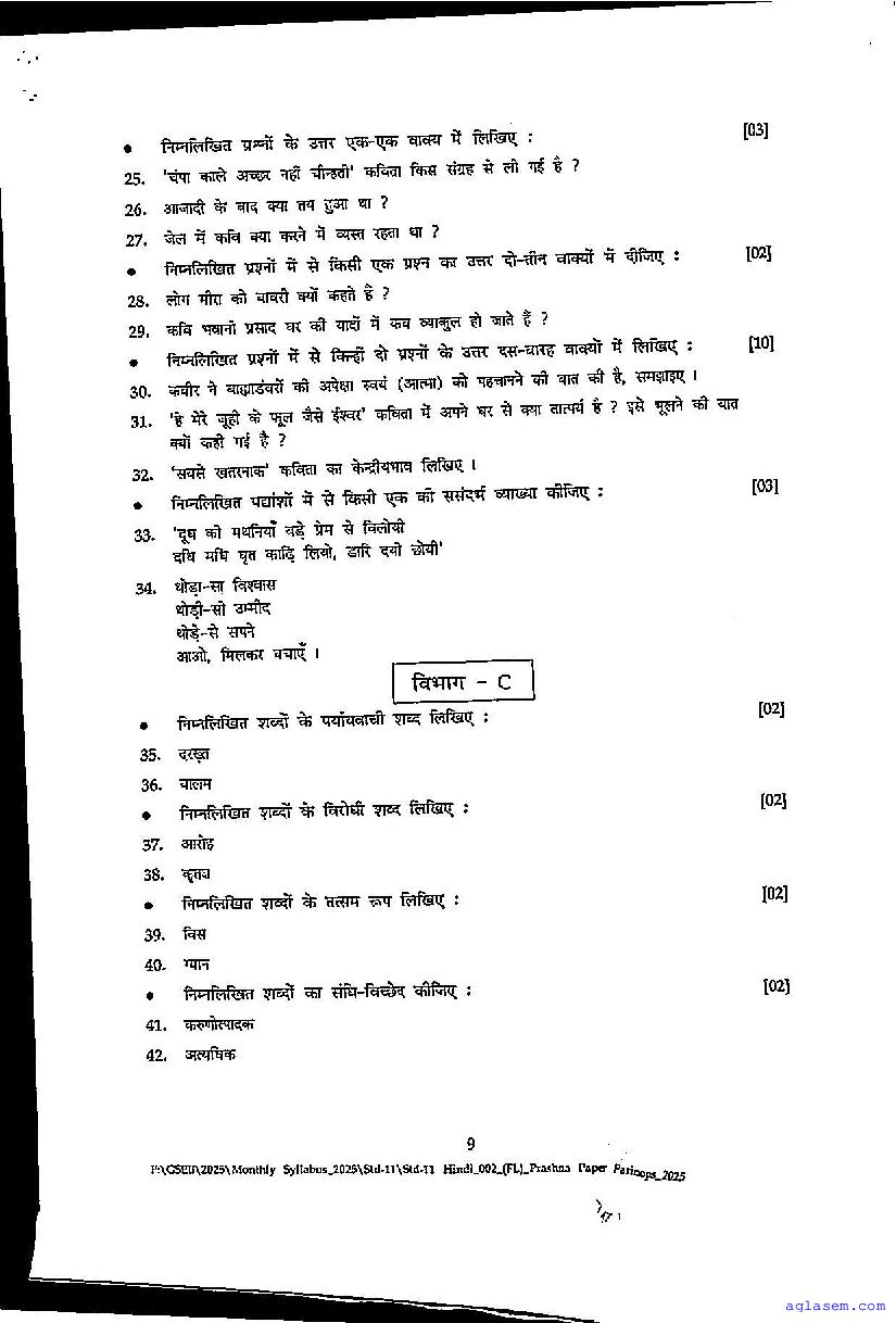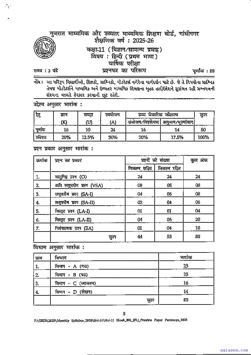| Educational Resource Here | Gujarat Board Class 11 Hindi FL Model Question Paper |