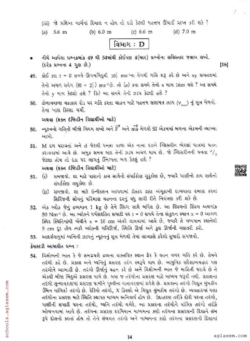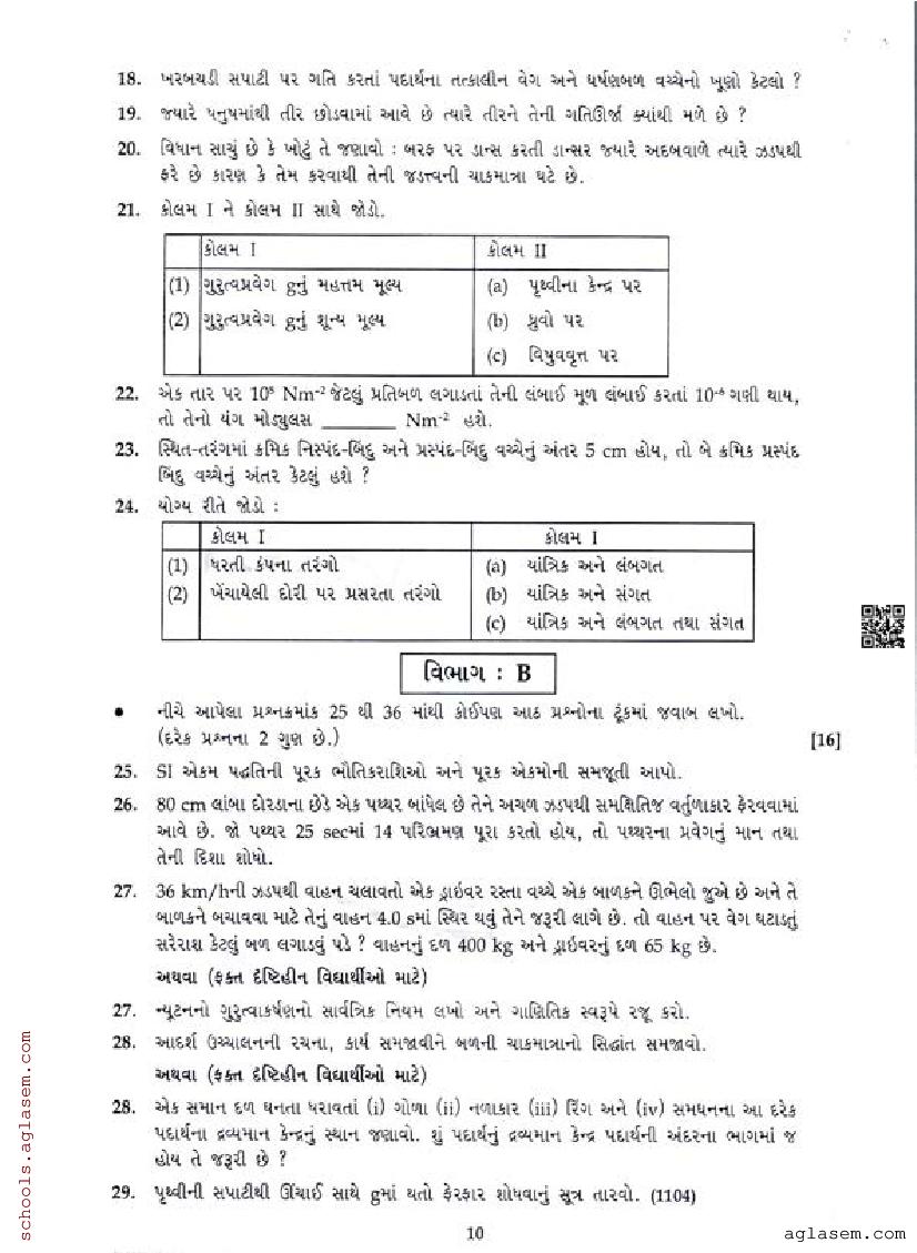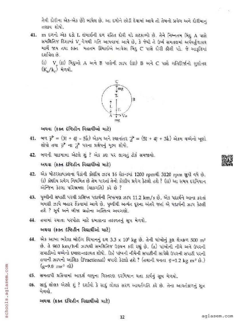 GSEB 11th Std Model Question Paper Physics View Download