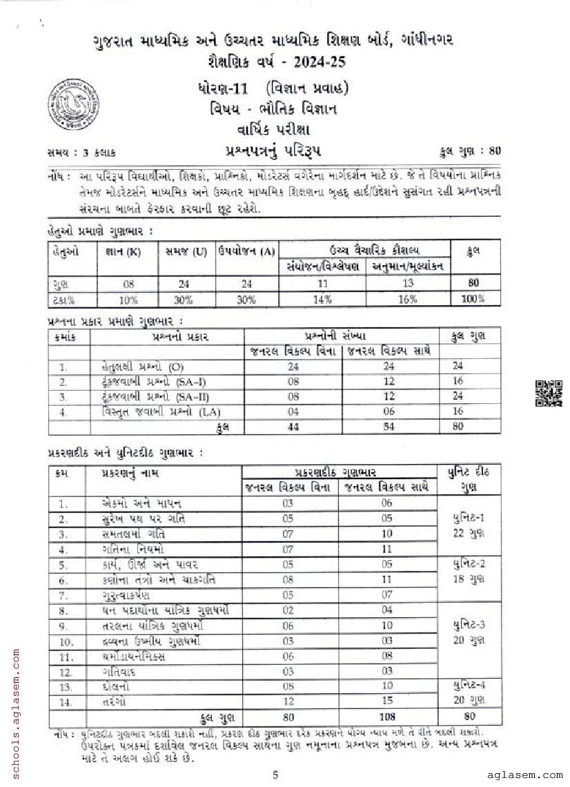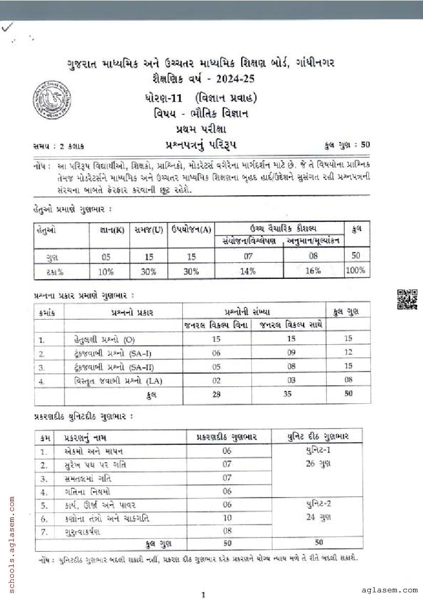 GSEB Std 11th Physics Model Paper 2026 has been released by Gujarat Board. You can download the Gujarat Board Class 11 Physics Sample Paper PDF from this page on Aglasem for study purposes. This GSEB Std 11th Model Paper is for the Physics subject to help you prepare for the Class 11 exams. The Physics sample paper includes illustrative questions based on the latest Gujarat Board syllabus for Standard 11, thereby helping you prepare for the Physics paper. By practicing with the Std 11 Physics sample paper, you can aim for high marks in the GSEB exams.