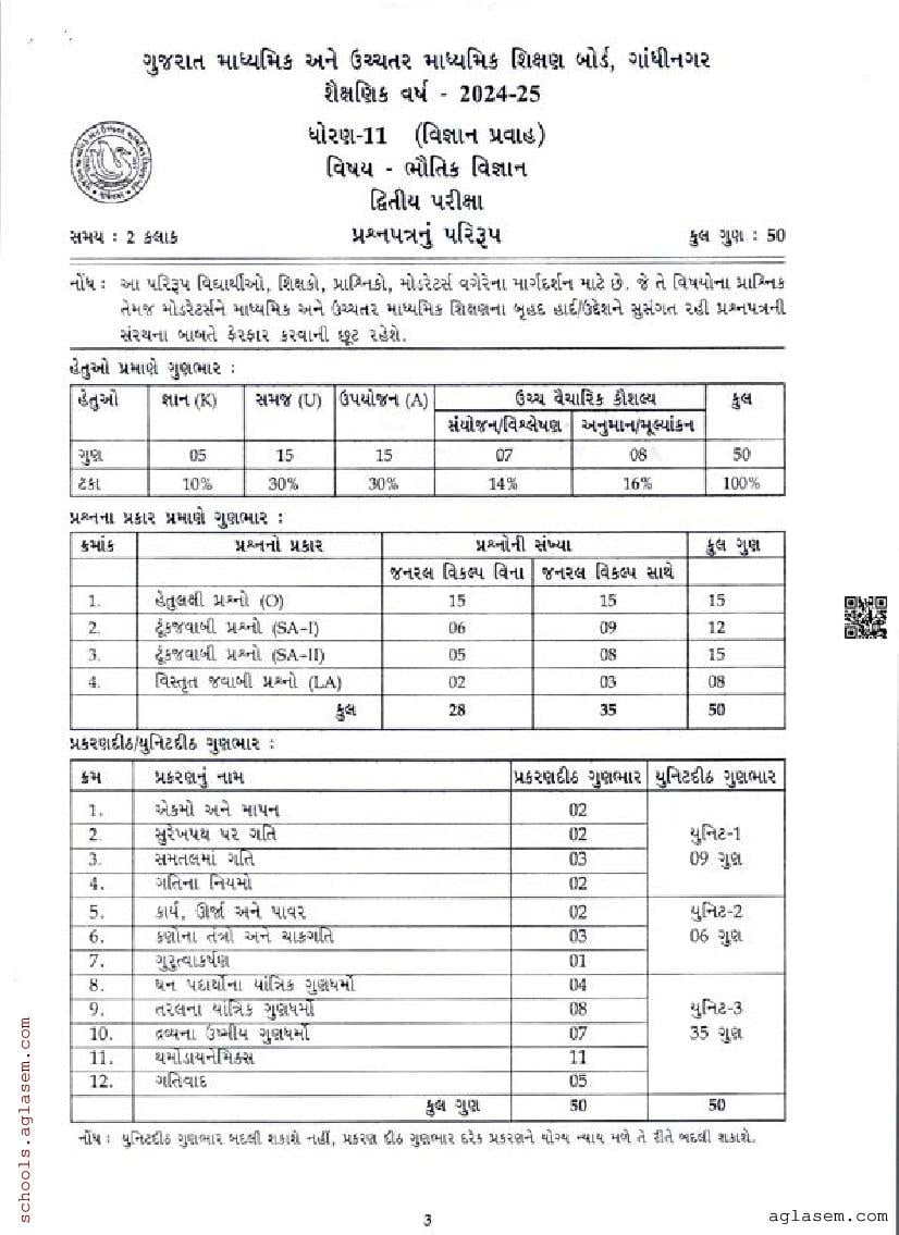 GSEB Std 11th Physics Model Paper 2026 – An Overview