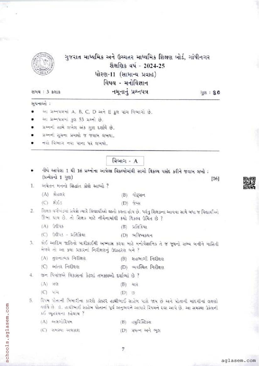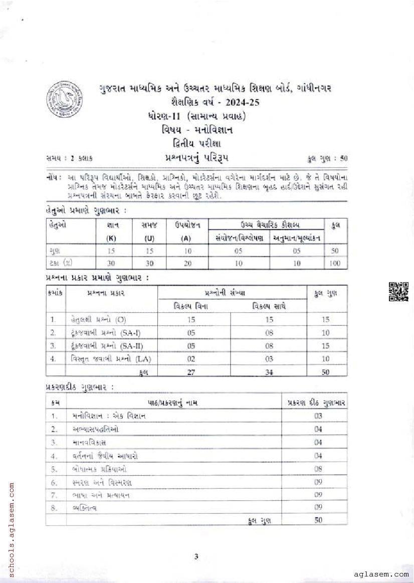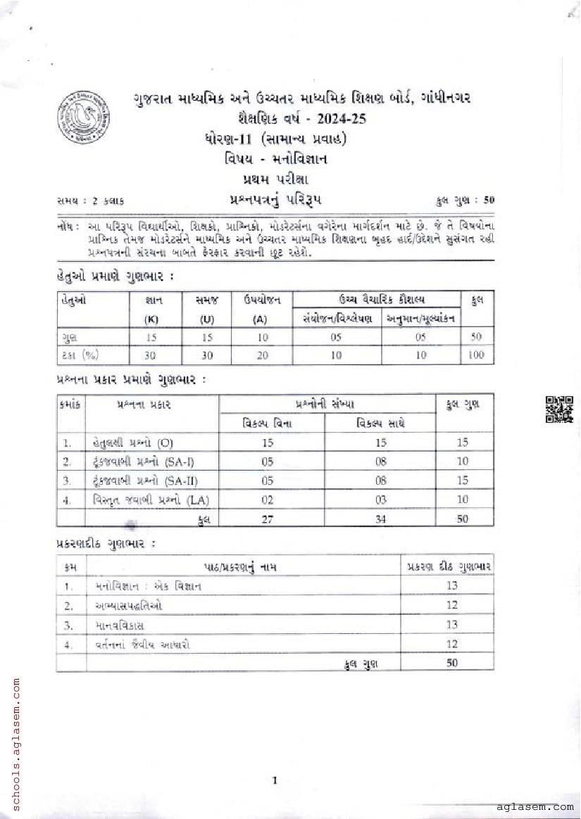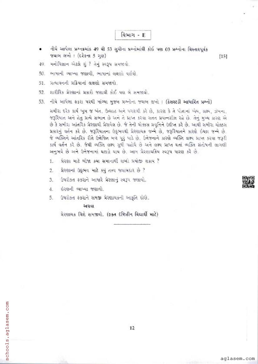 | Educational Resource Here | Gujarat Board Class 11 Psychology Model Question Paper |