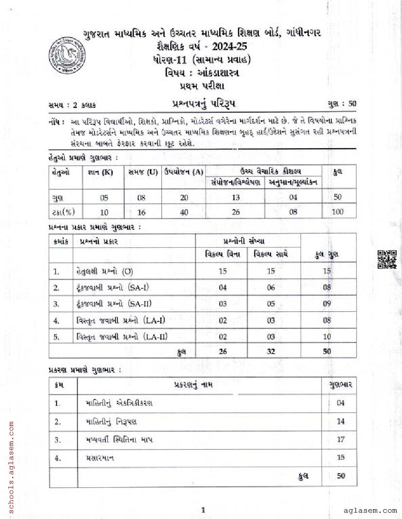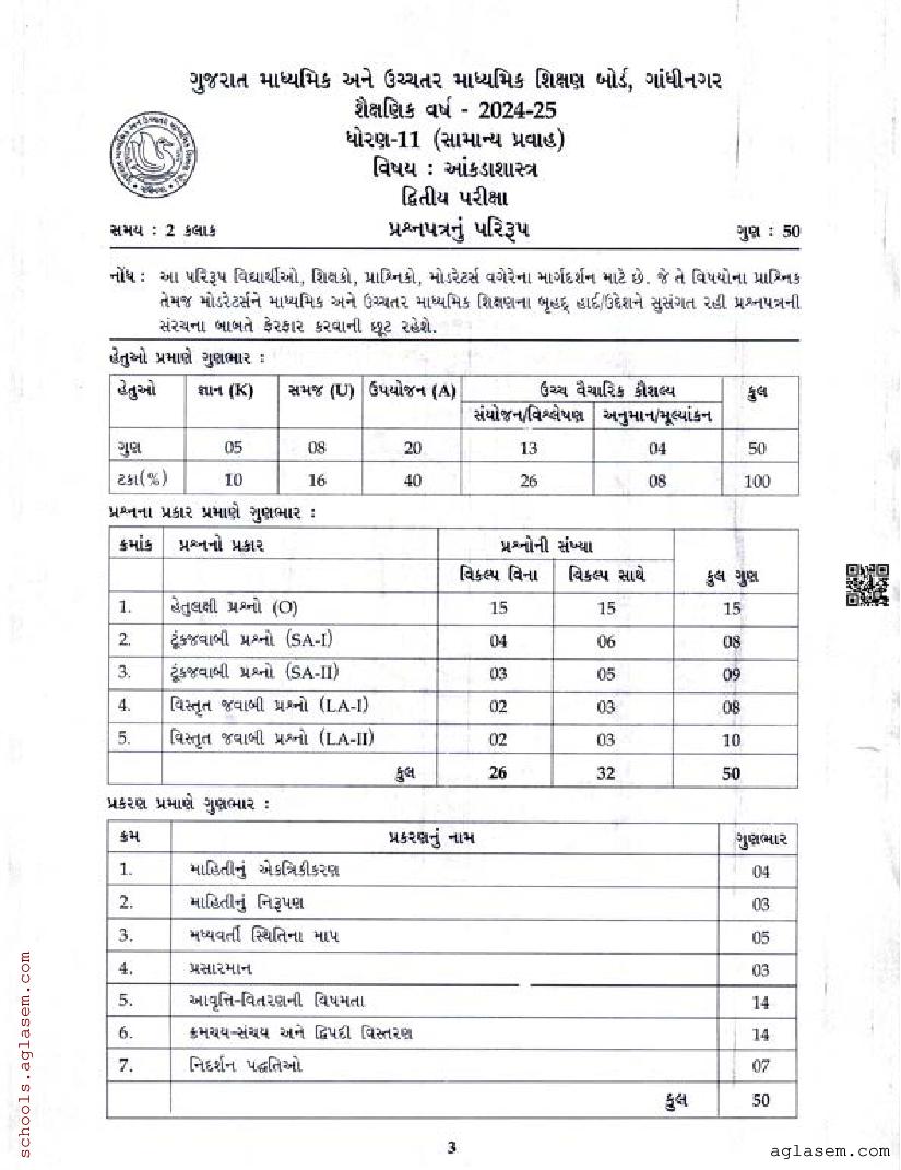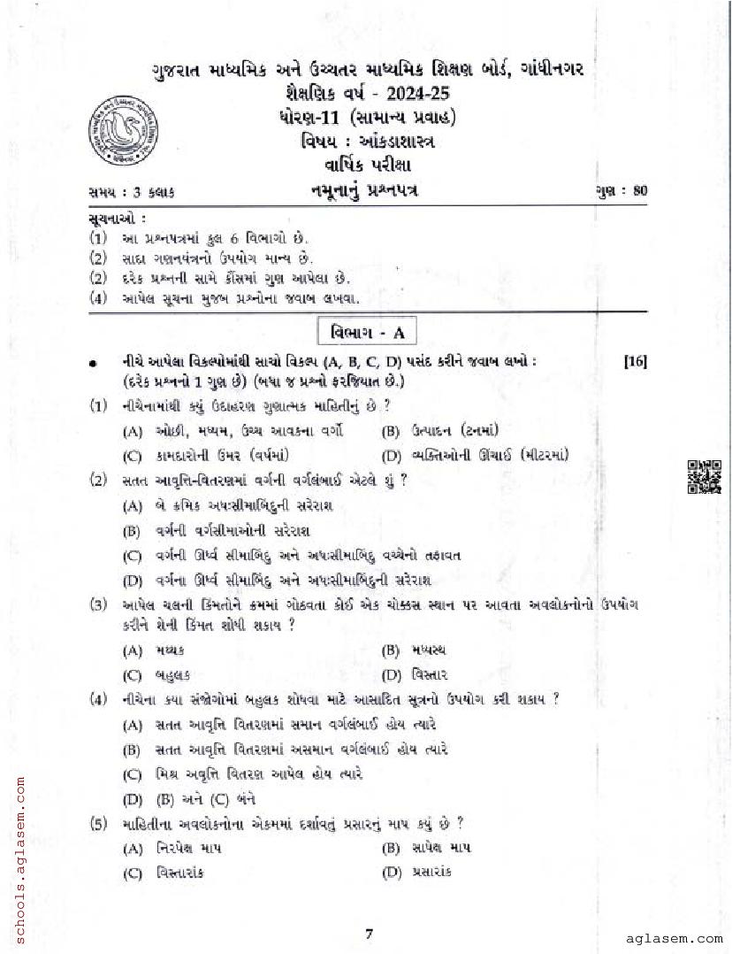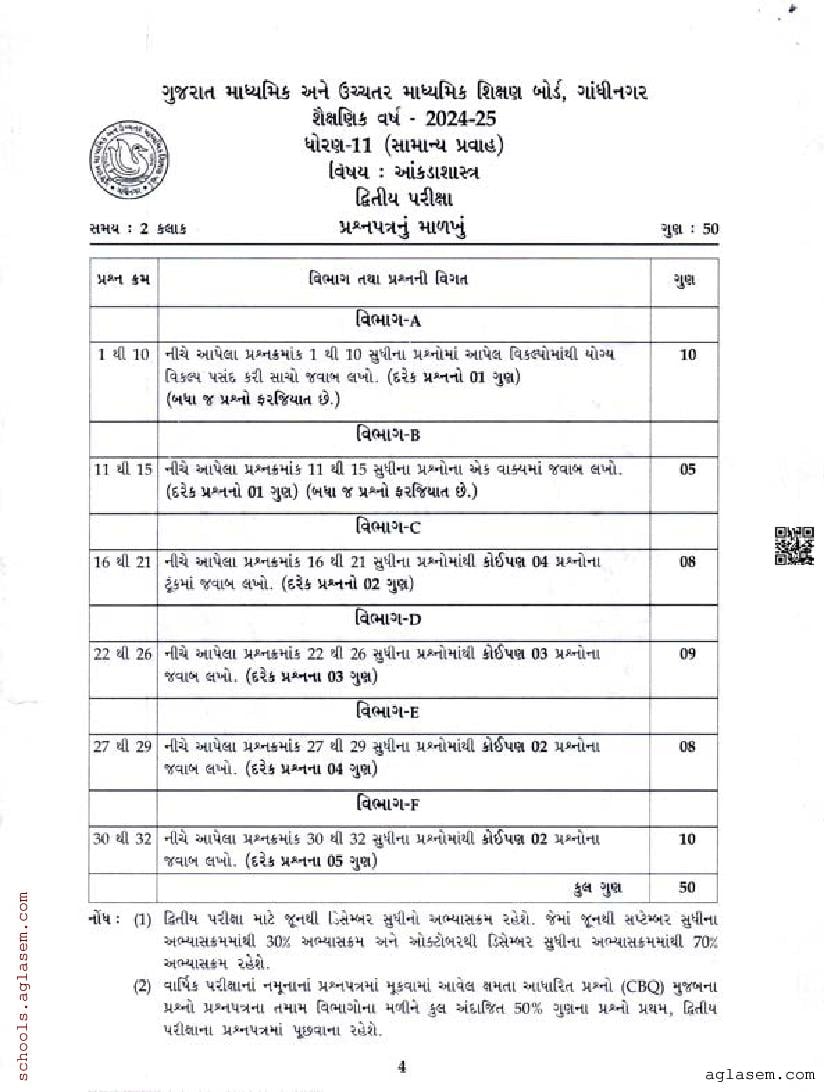 GSEB 11th Std Model Question Paper 2025 Statistic View Download