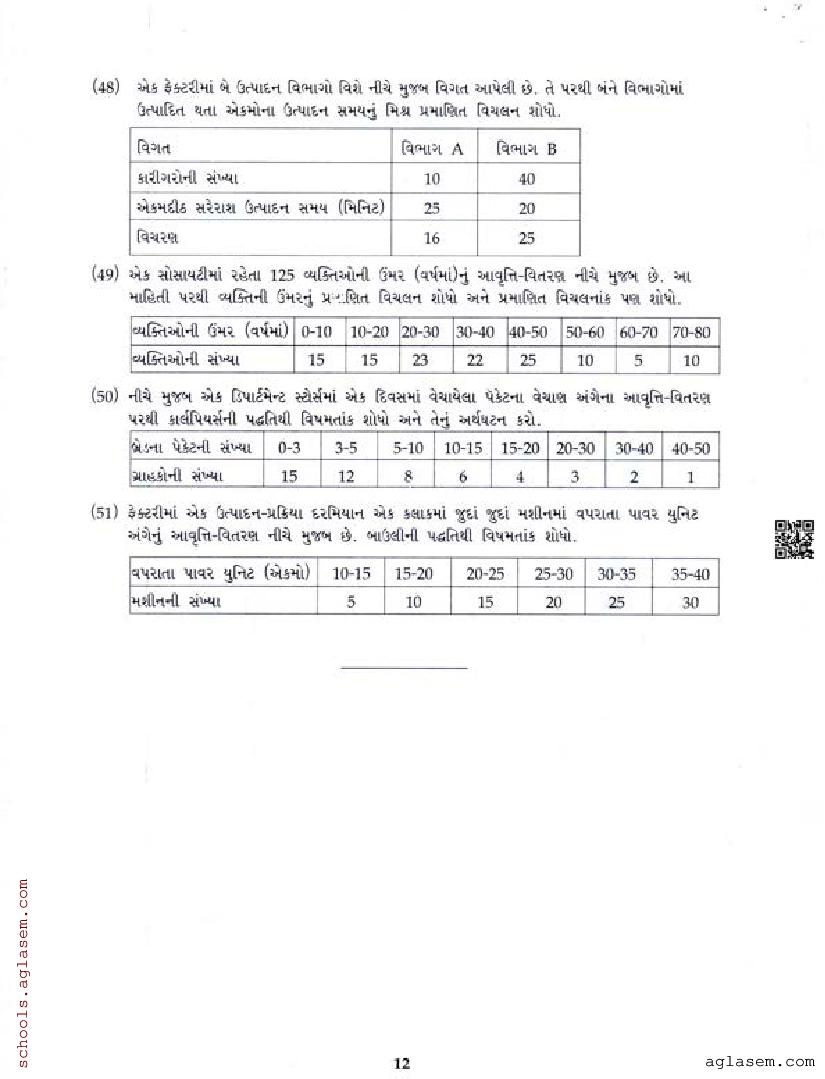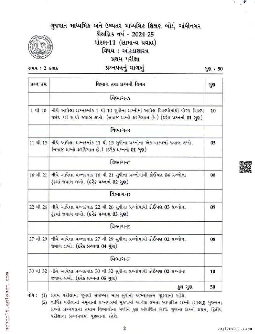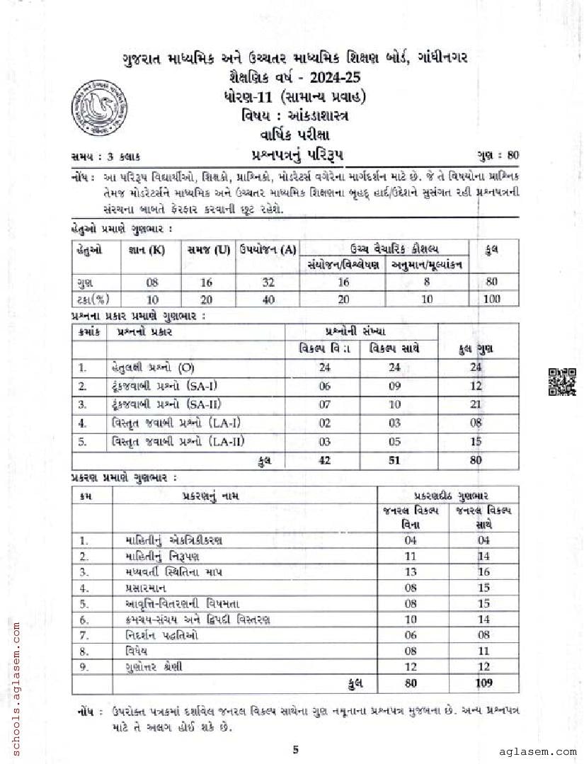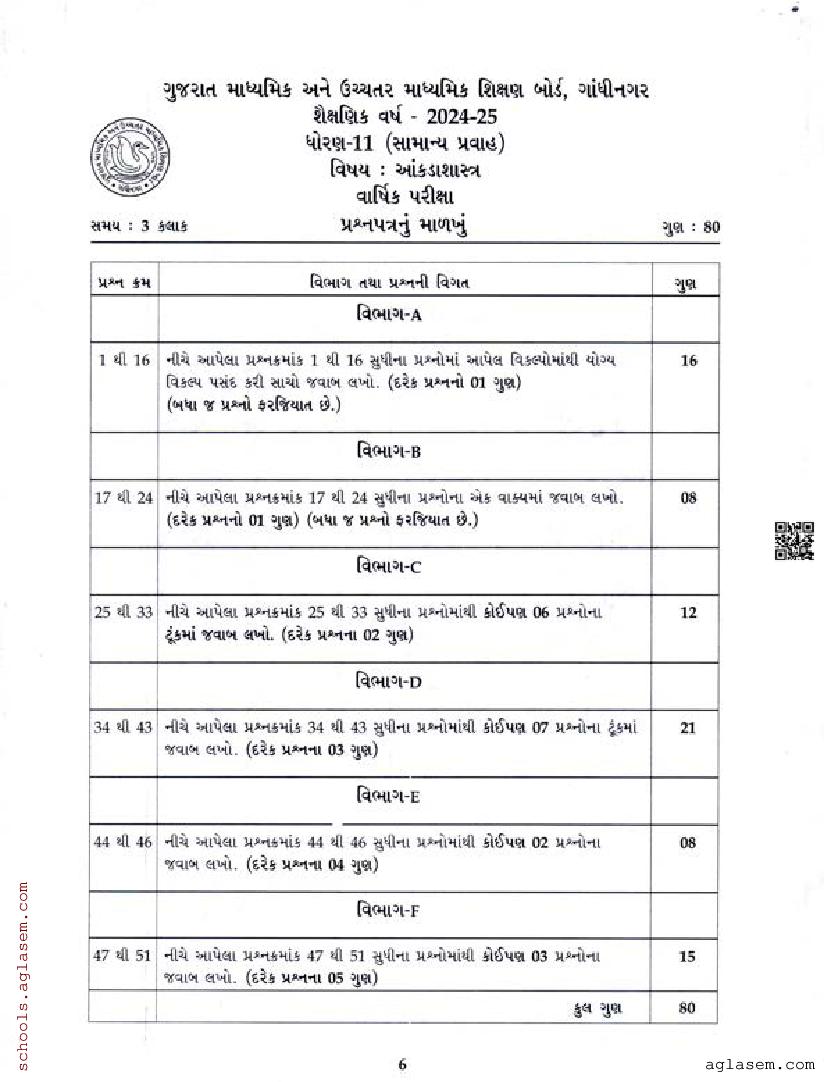 GSEB 11th Std Model Question Paper 2025 Statistic View Download