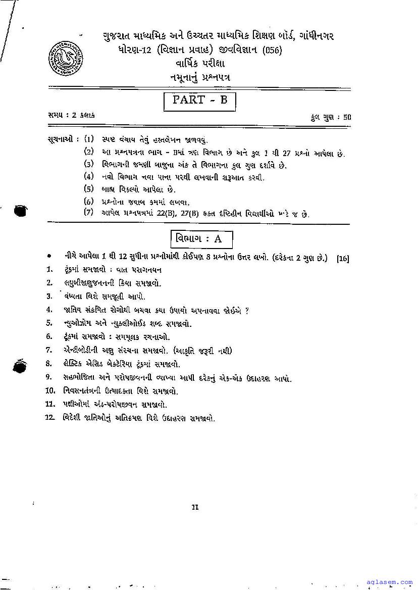 | Educational Resource Here | Gujarat Board Class 12 Biology Model Question Paper |