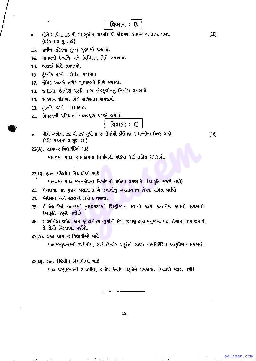 GSEB 12th Std Model Question Paper 2026 Biology View Download