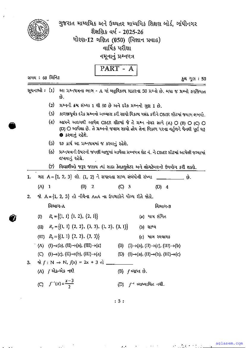 GSEB 12th Std Model Question Paper 2026 Maths View Download