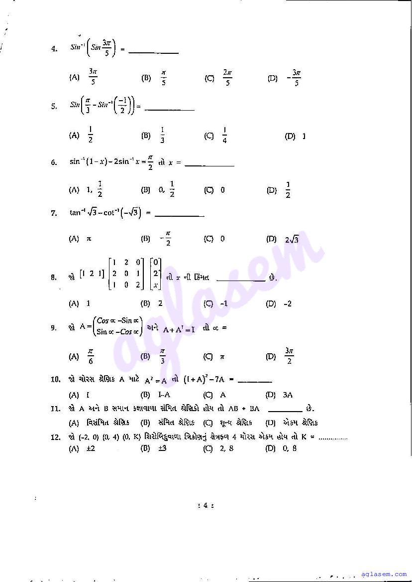 The GSEB Sample Paper for class 12 Maths is as follows.