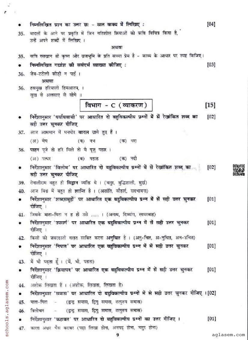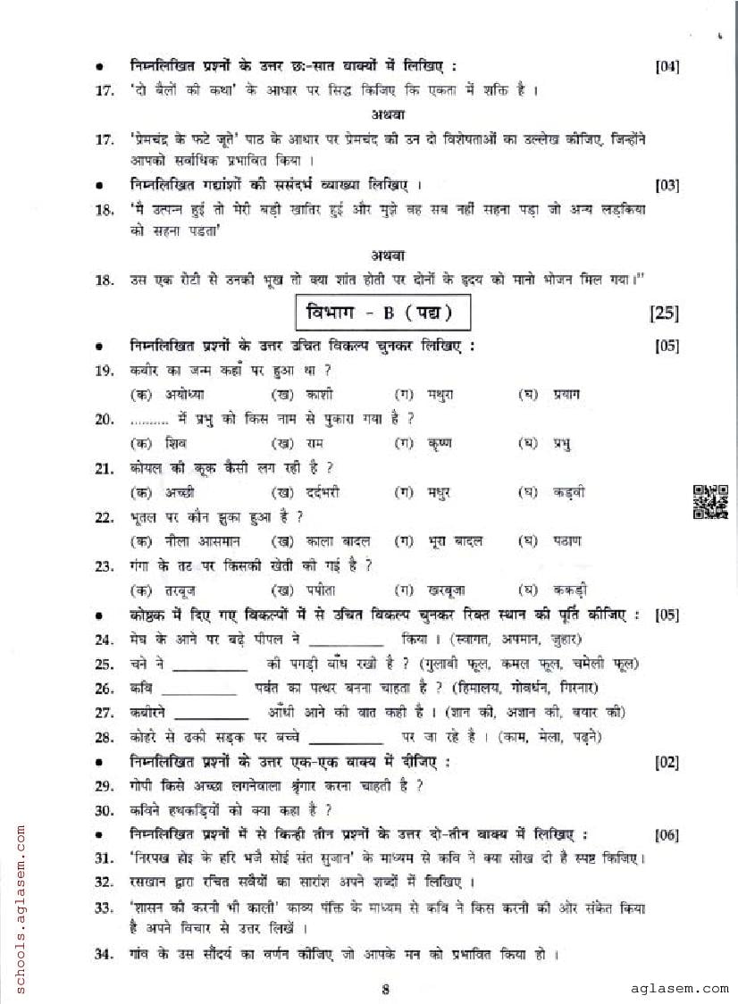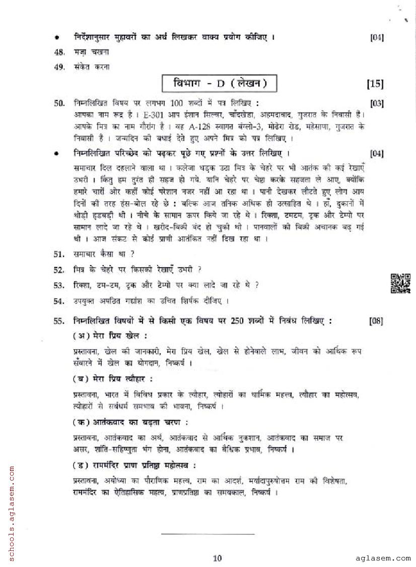 The GSEB Sample Paper for class 9 Hindi FL is as follows.