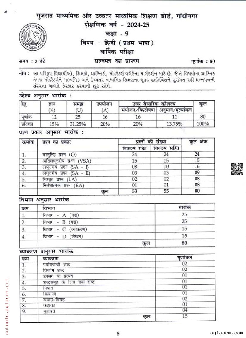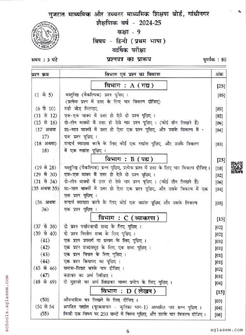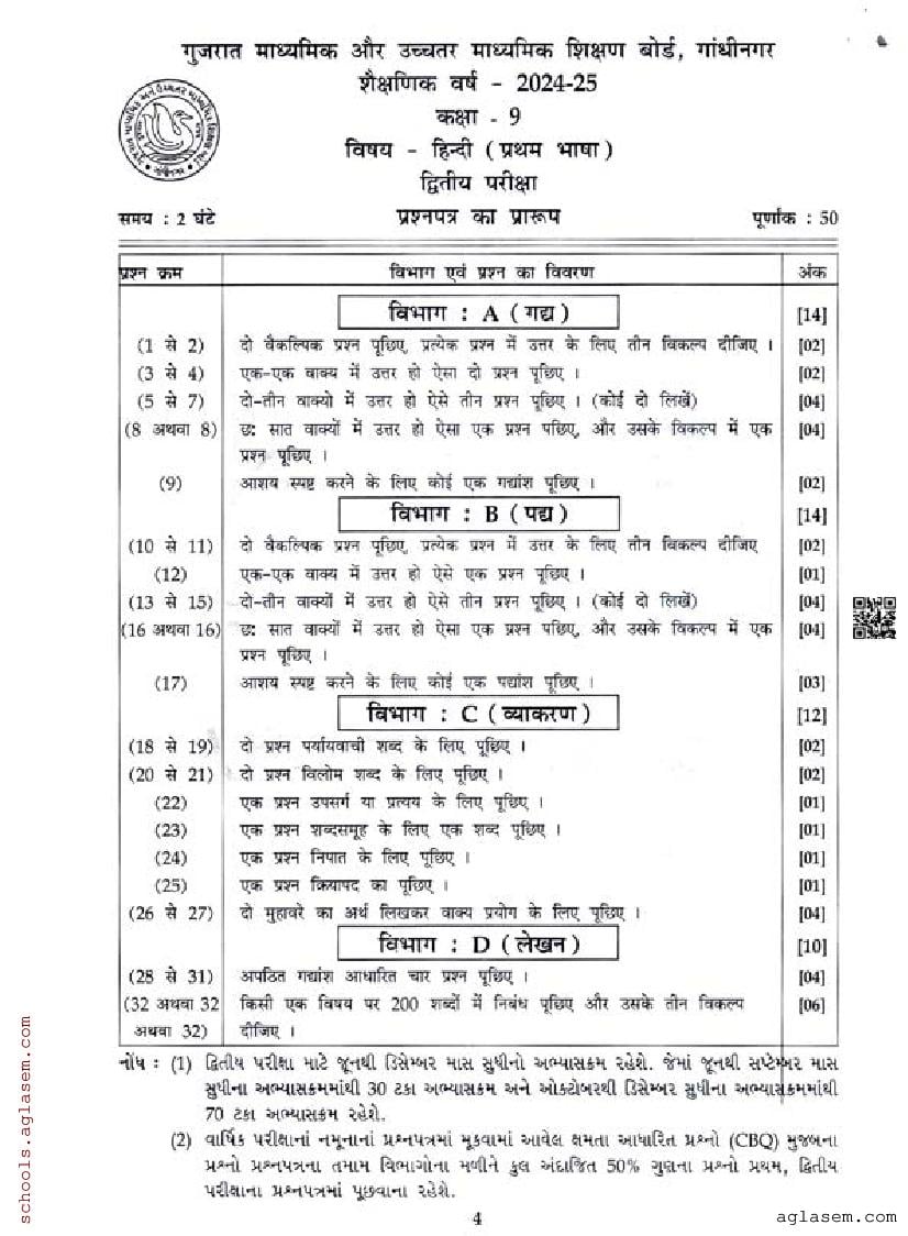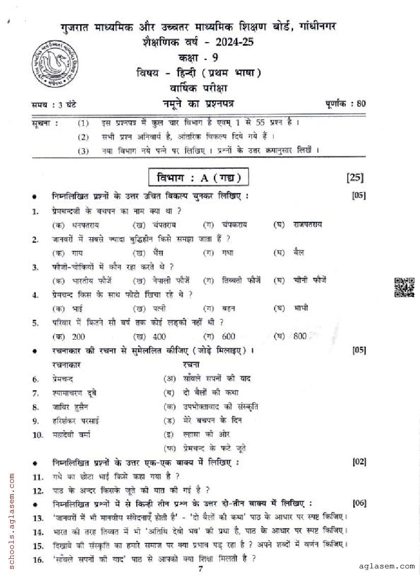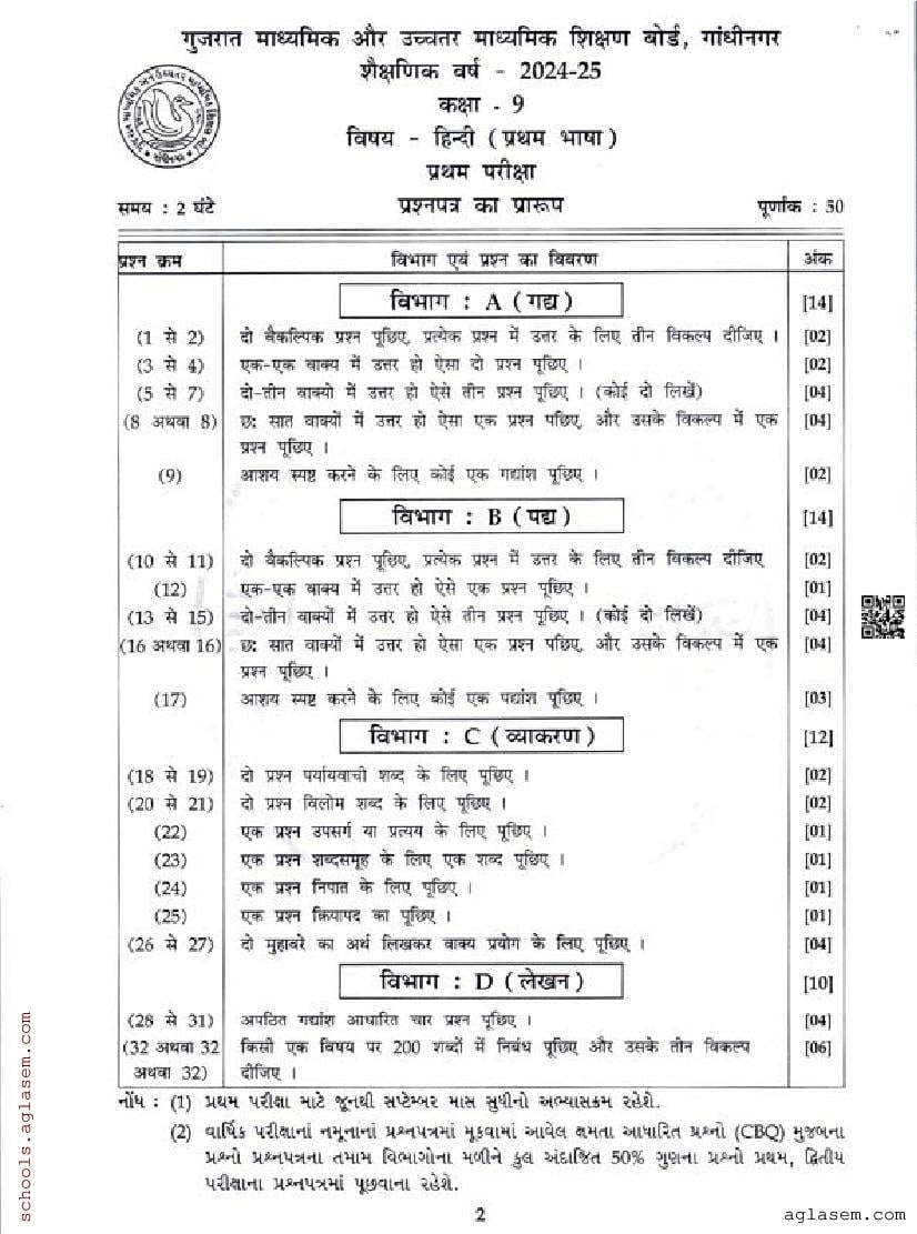 | Educational Resource Here | Gujarat Board Class 9 Hindi FL Model Question Paper |
