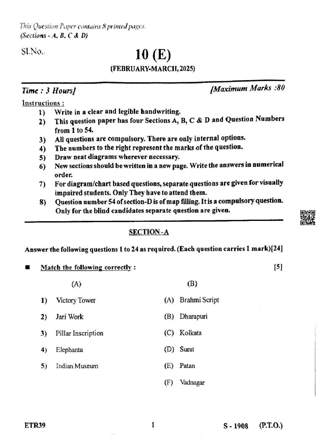 Gujarat SSC Social Science Question Paper 2025 PDF