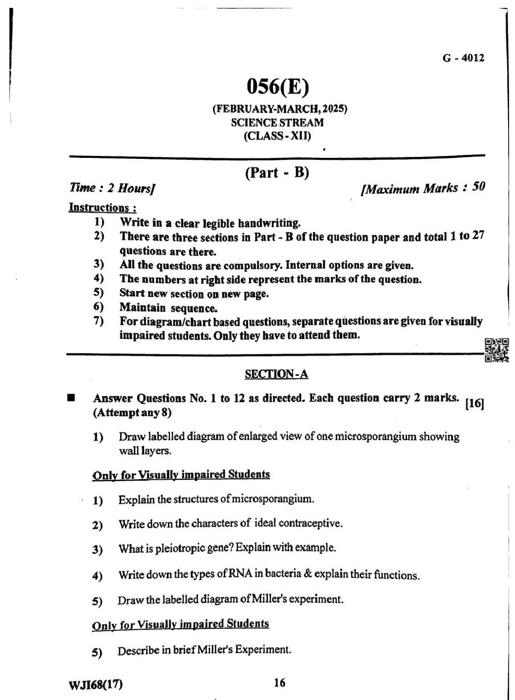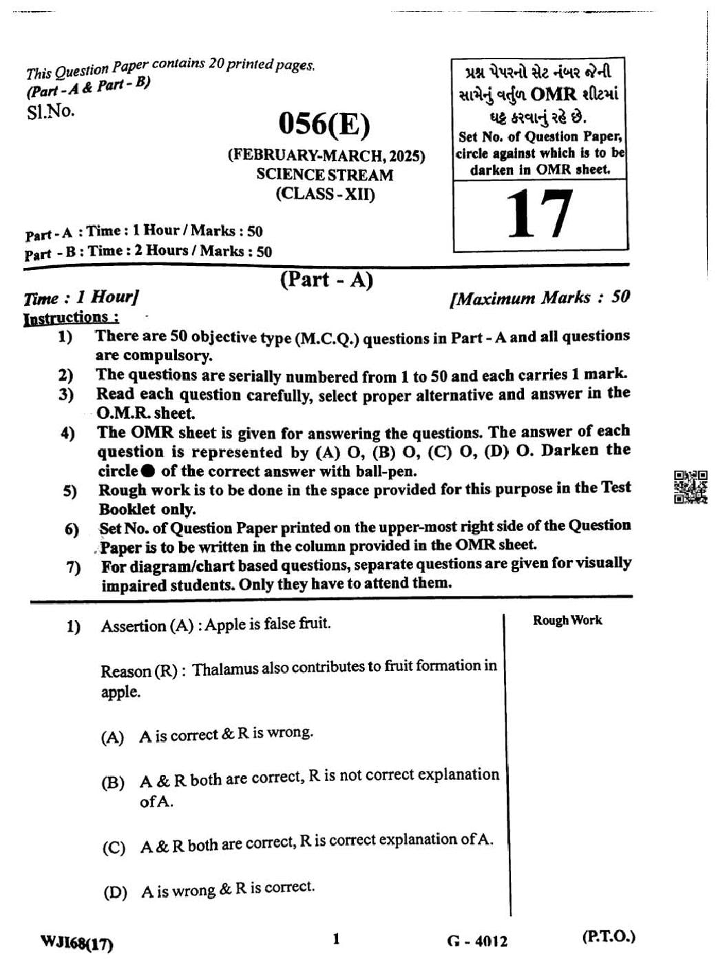 Gujarat HSC Biology Question Paper 2025