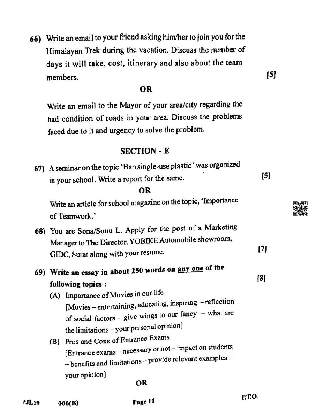 The Gujarat Board Exam Question Paper of Class 12 HSC English is as follows.