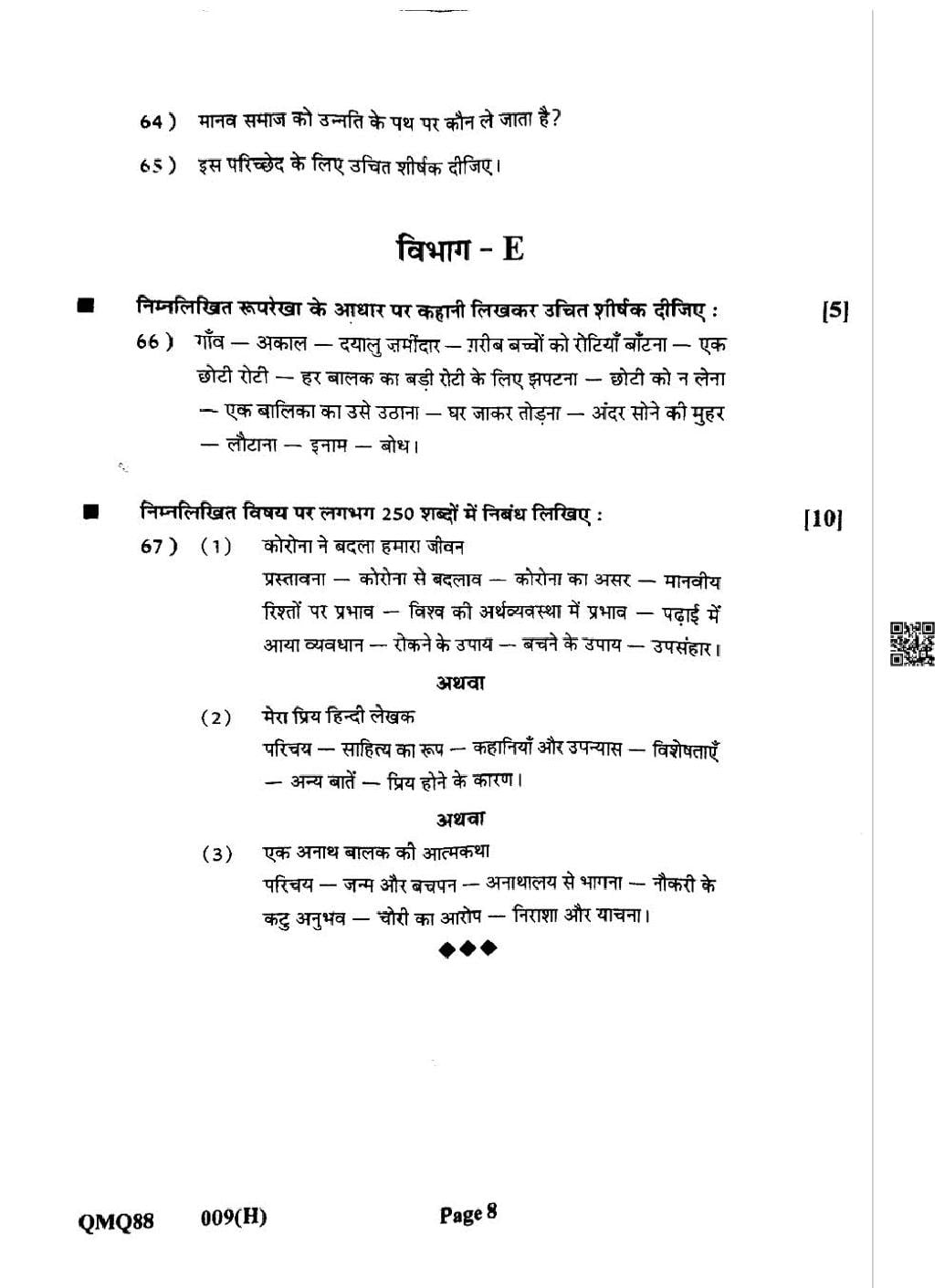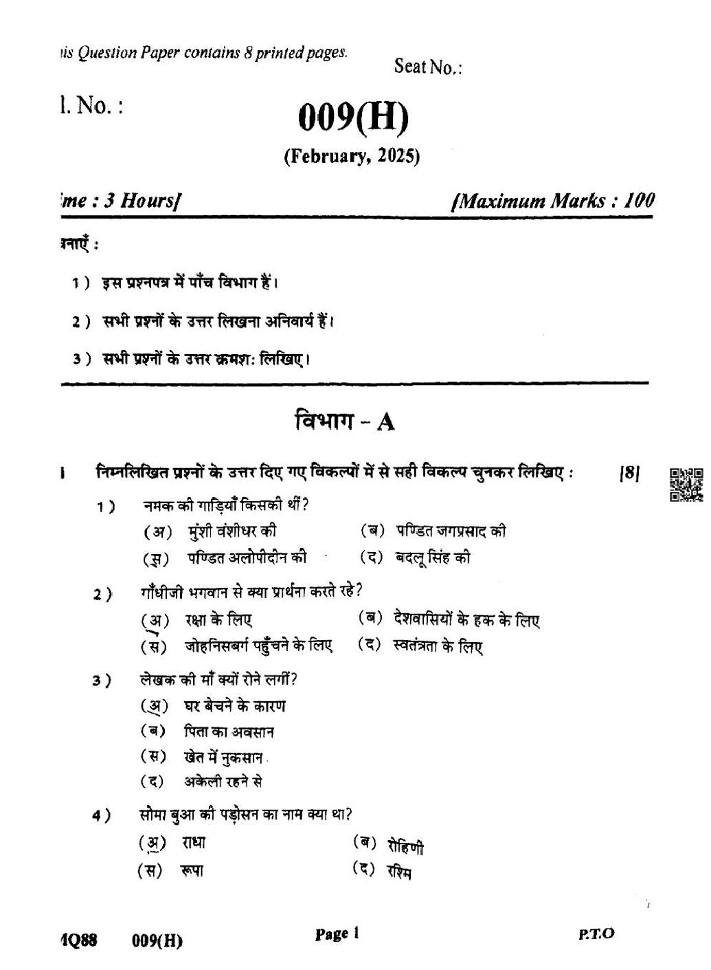 Gujarat HSC Hindi Question Paper 2025