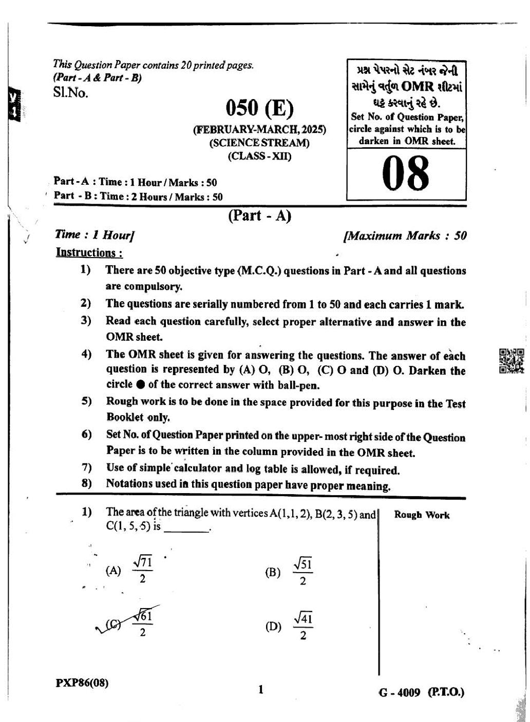 Gujarat HSC Maths Question Paper 2025