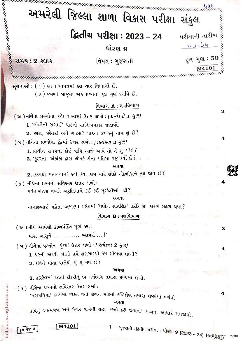 If you have any queries on Gujarat Std 9th Gujarati Question Paper 2025, then please ask in comments below.