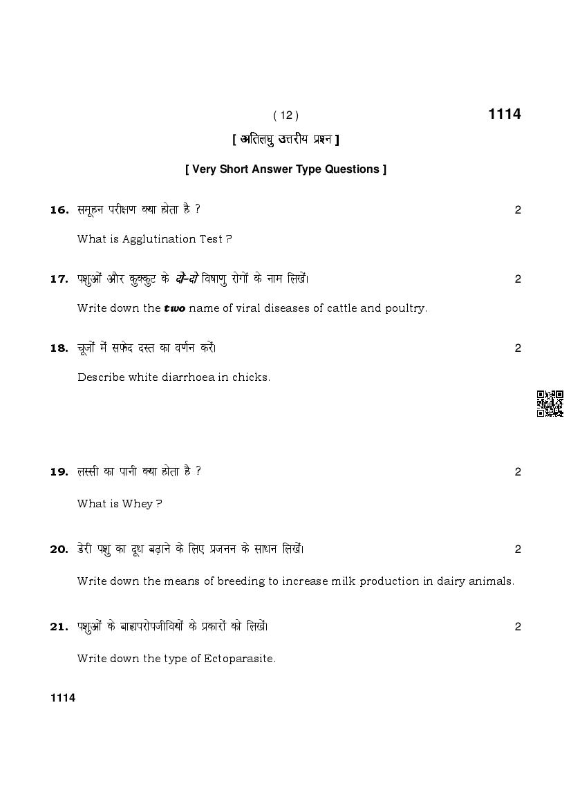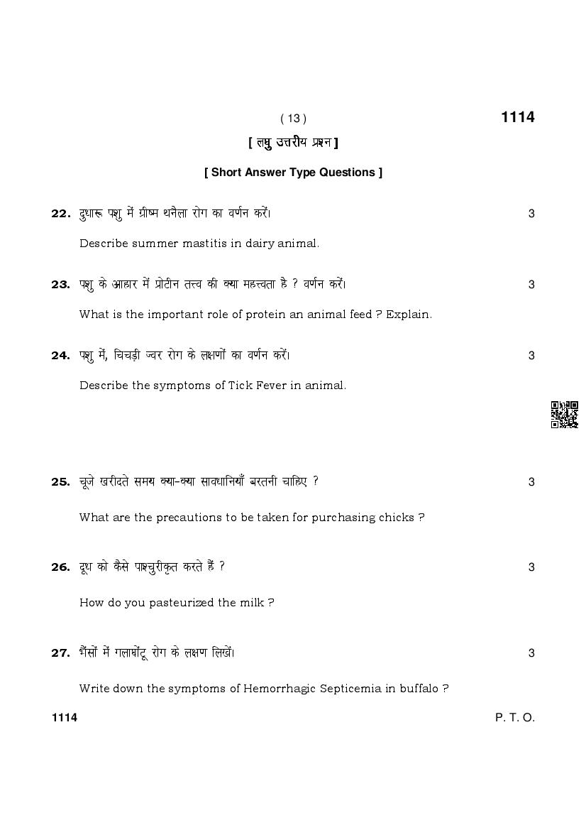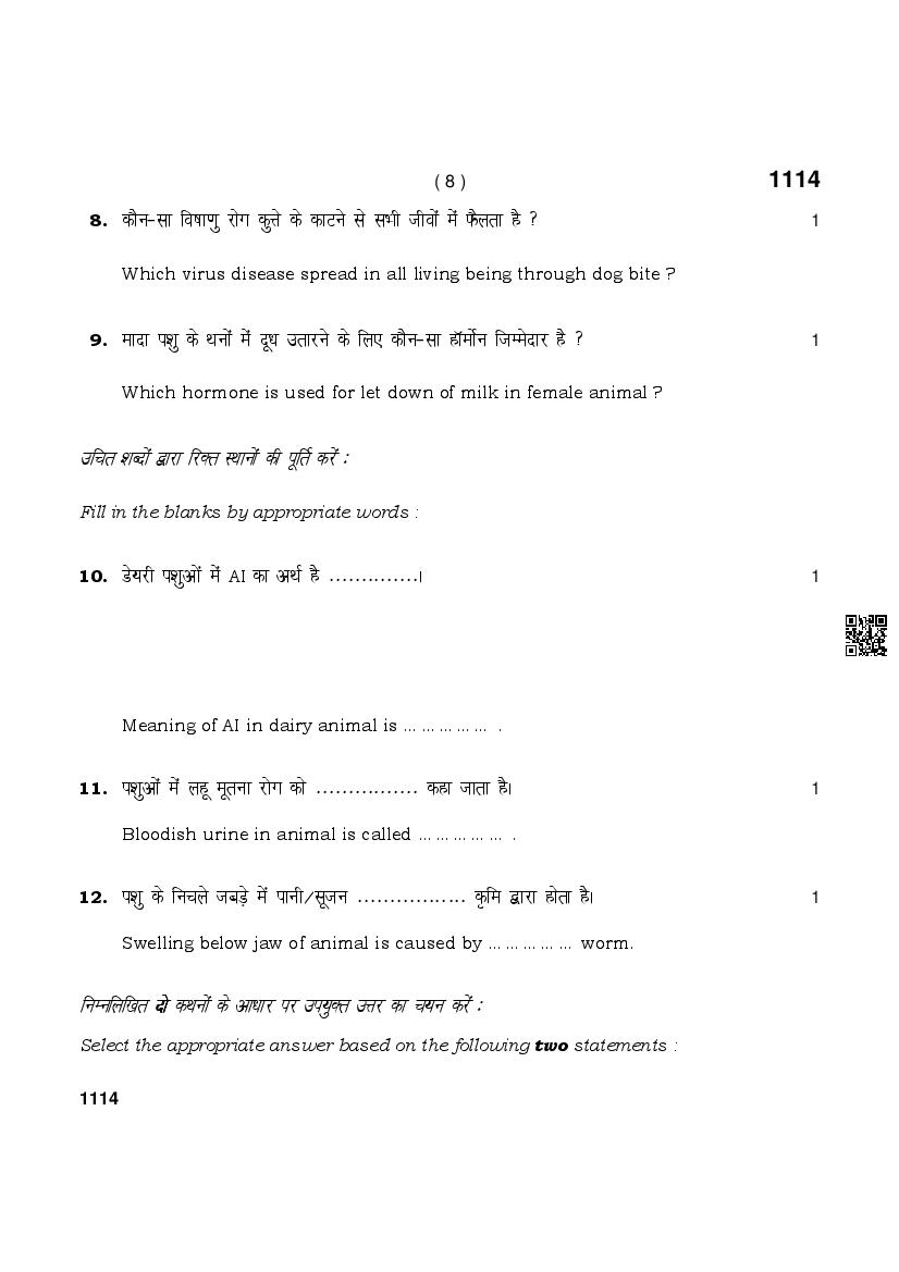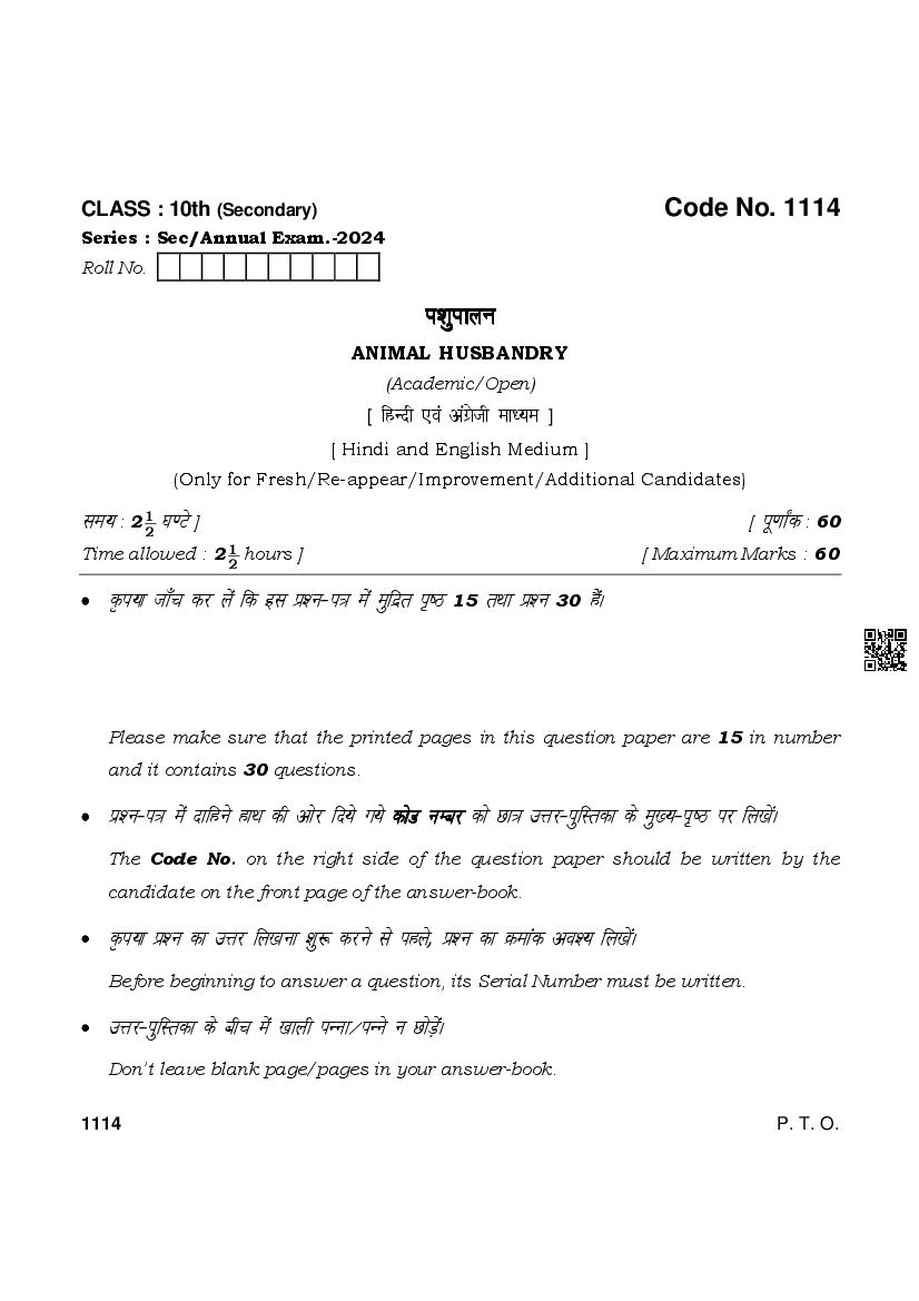 HBSE Class 10 Question Paper 2024 Animal Husbandry View Download