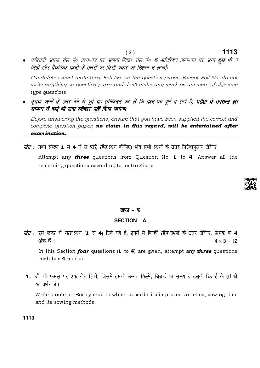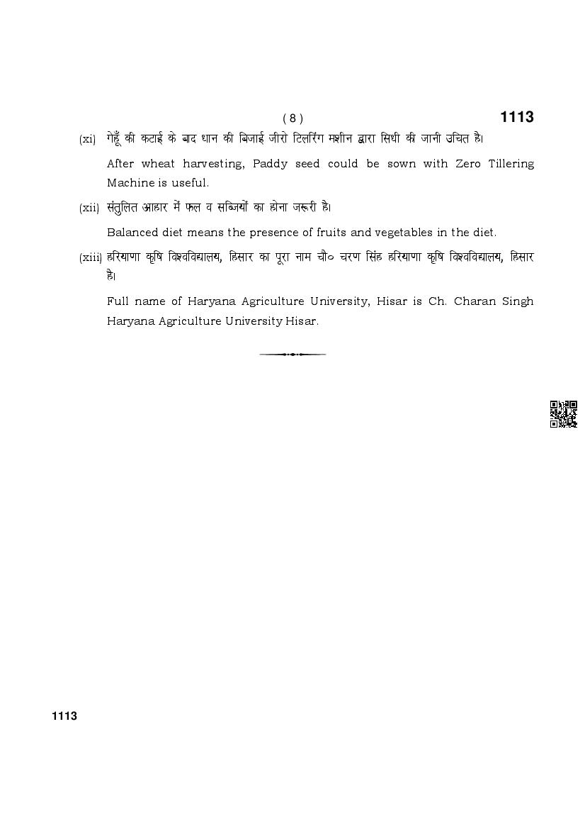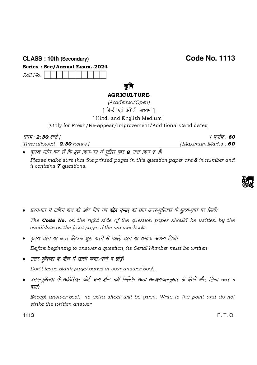 HBSE Class 10 Question Paper 2024 Agriculture View Download