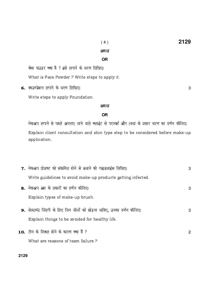 | Study Material Here | Haryana Board Previous Year Question Papers for Class 10th Beauty & Wellness |
