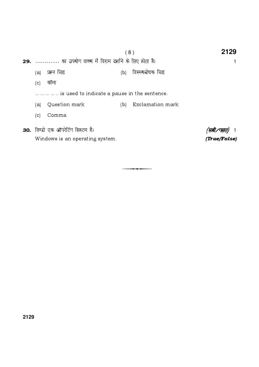 | More Old Papers for This Board | Haryana Board Previous Year Question Papers |