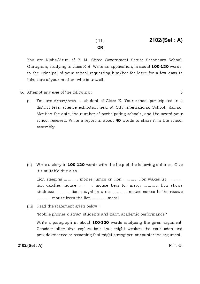 More HBSE 10th English Question Paper – Click Here for more PYQP PDF