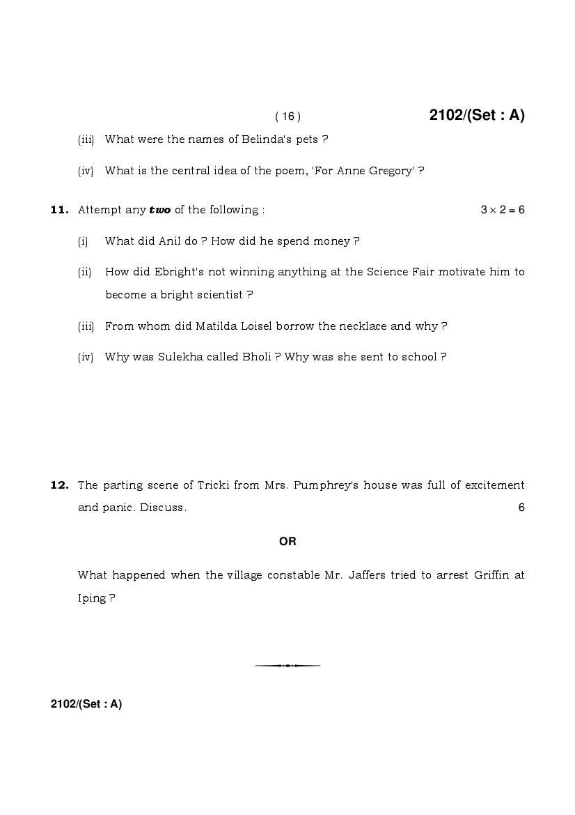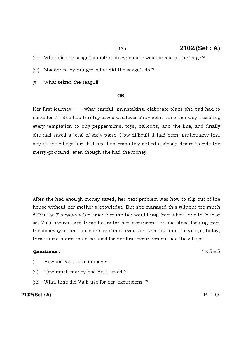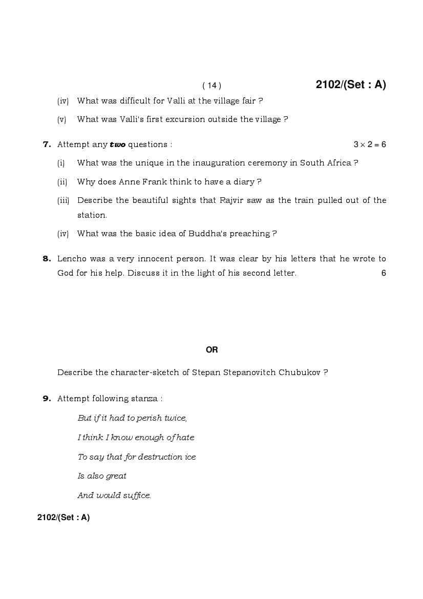 The HBSE Previous Year Question Papers 2026, 2025, 2024, 2023, 2022, 2021 and more of class 10 English is as follows.