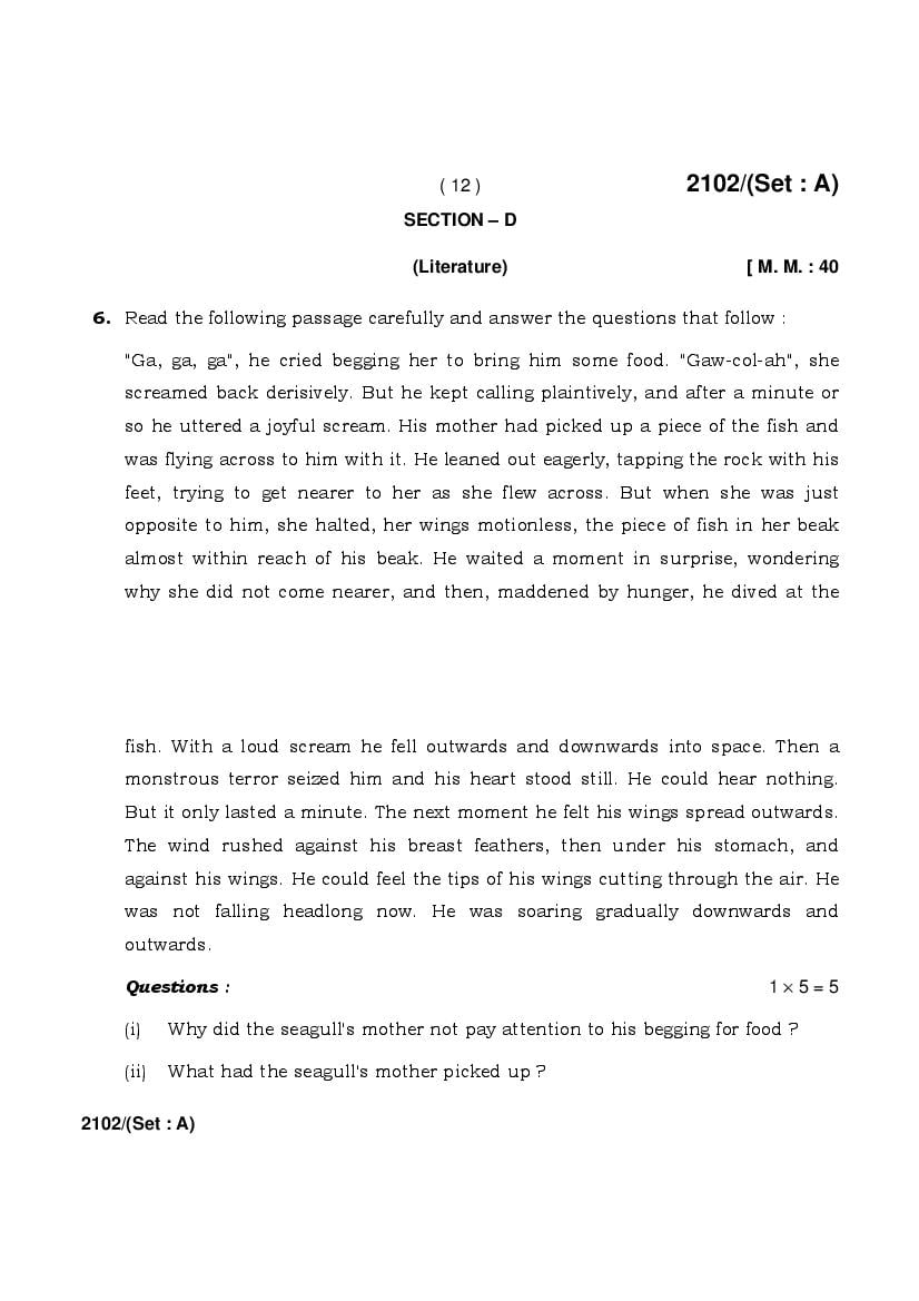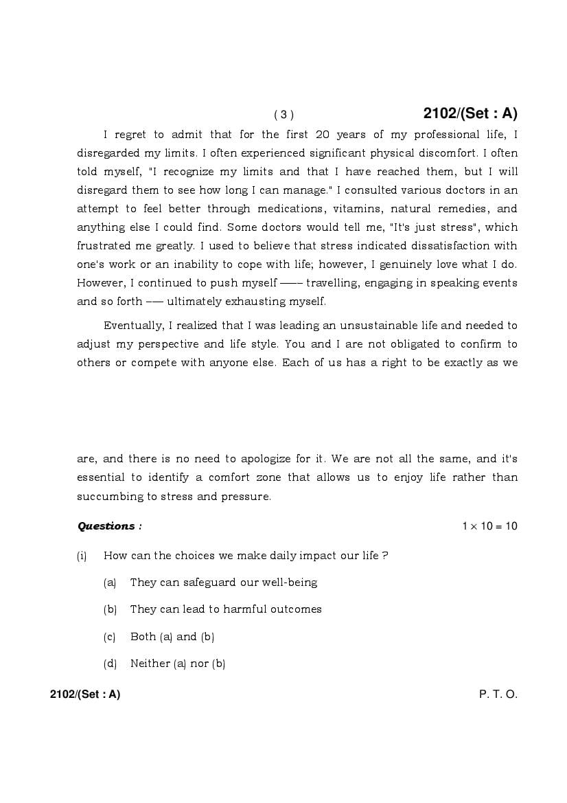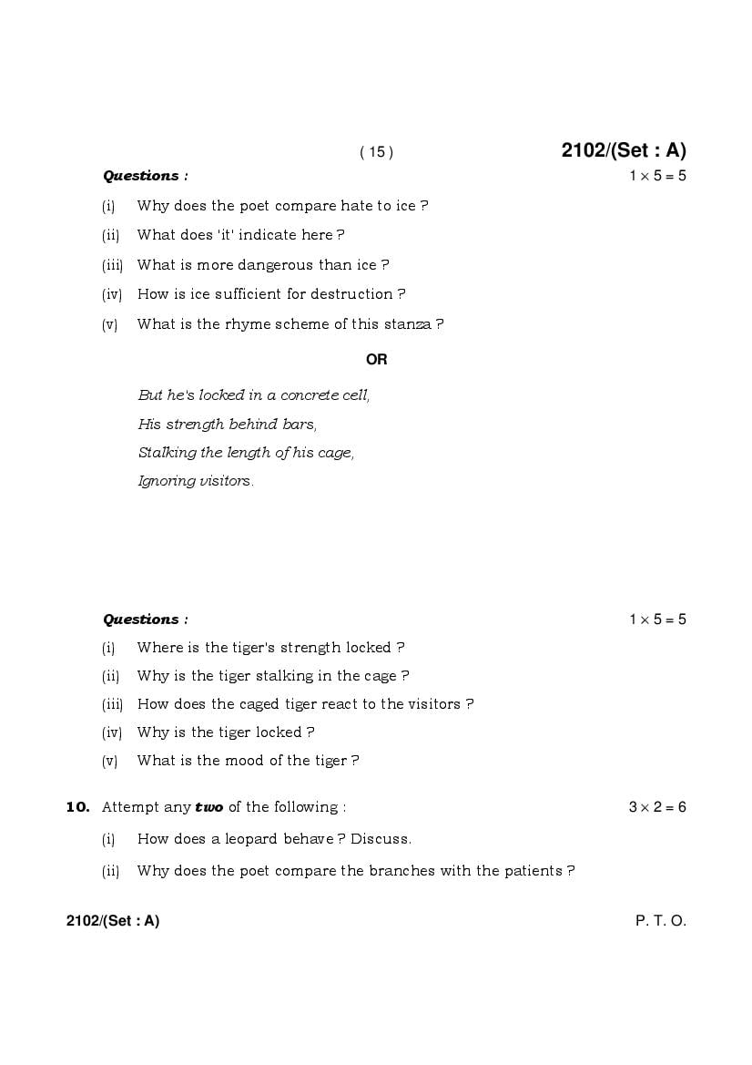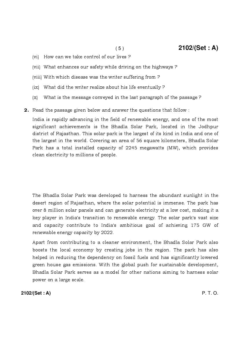 The HBSE Previous Year Question Papers 2026, 2025, 2024, 2023, 2022, 2021 and more of class 10 English is as follows.