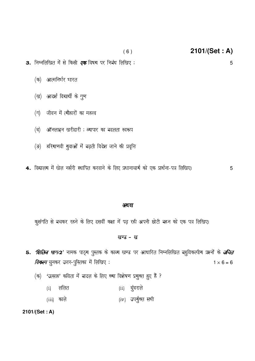 More HBSE 10th Hindi Question Paper – Click Here for more PYQP PDF